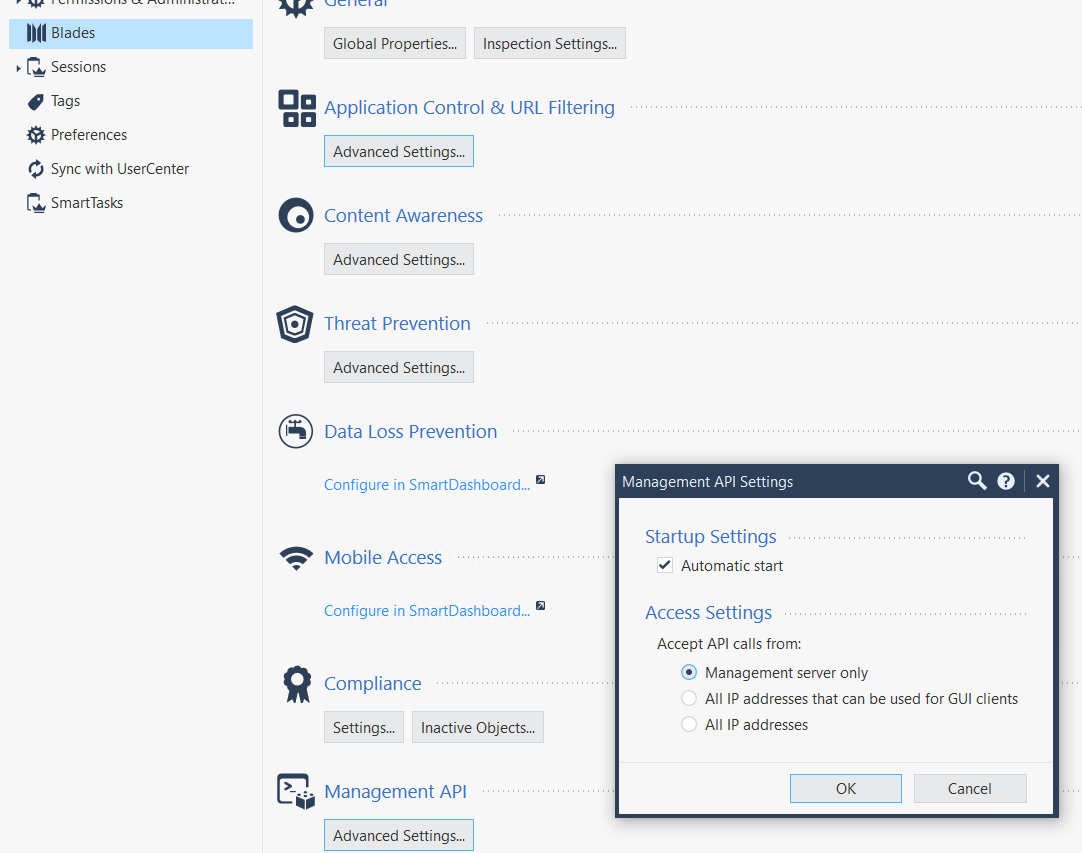It is required to Enable the API feature on the CheckPoint firewall, as shown below.