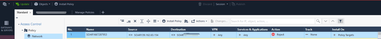 Configuring the Add Reject Access Rule can block the Source and Destination.
