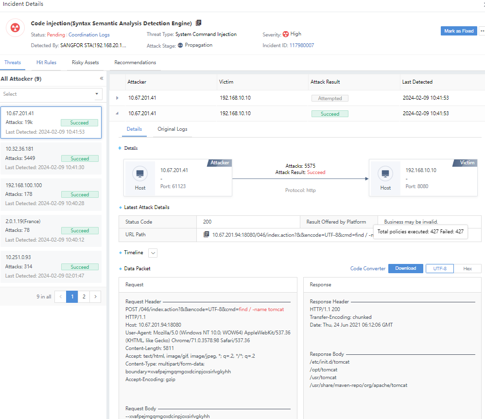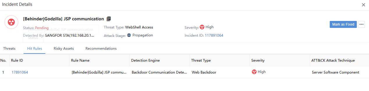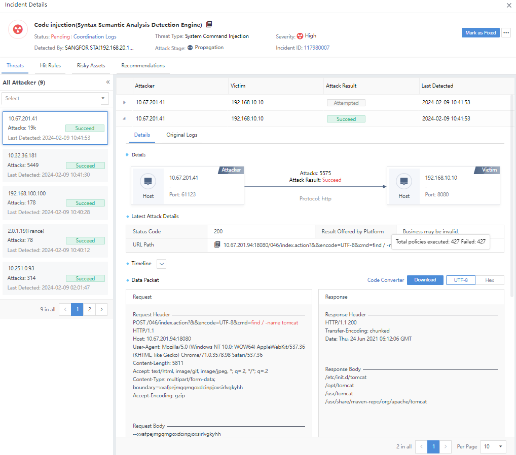 Detection engines include Sangfor WebShellKiller, Sangfor Malicious Script Analytics, and Sangfor Engine-Zero.