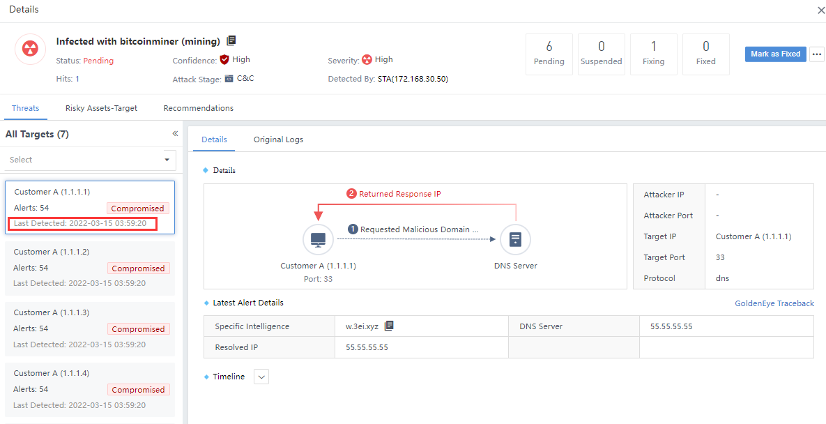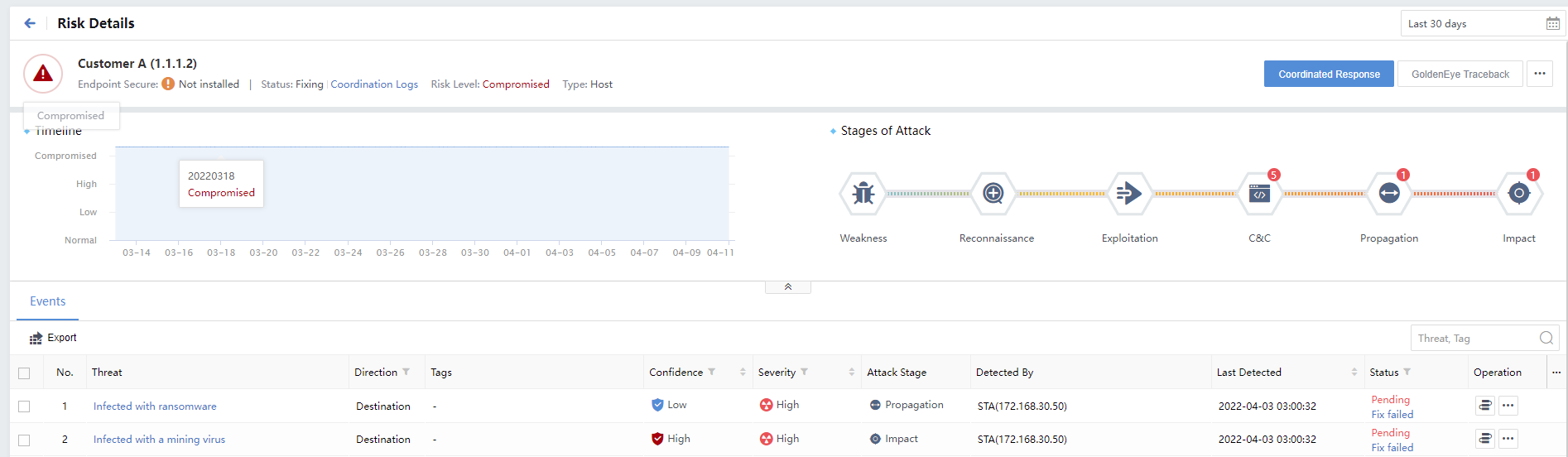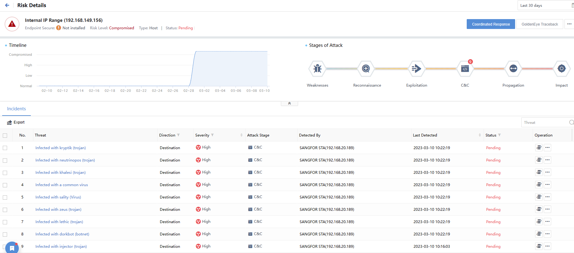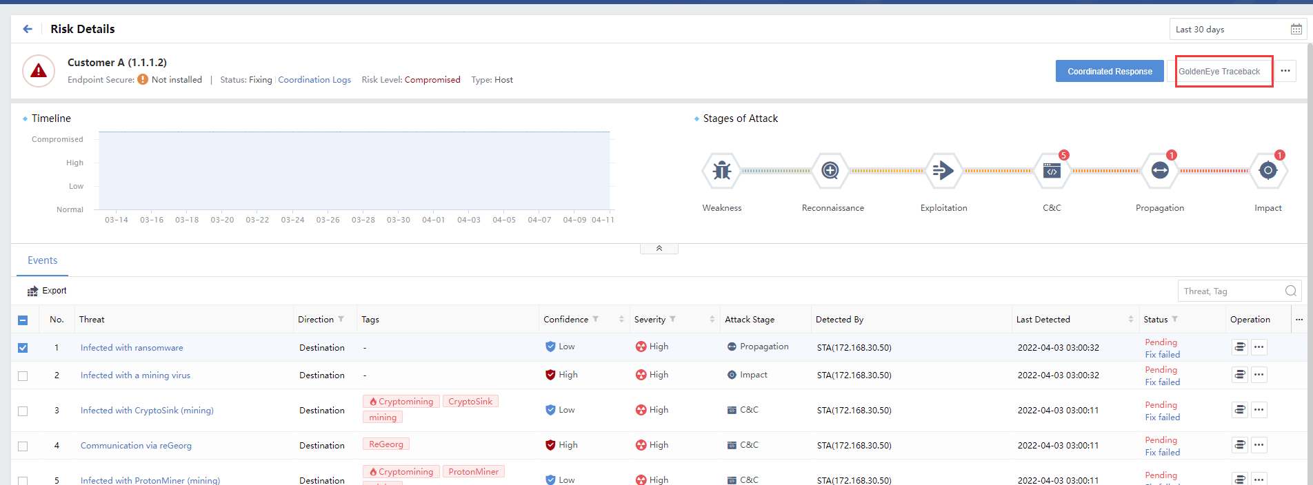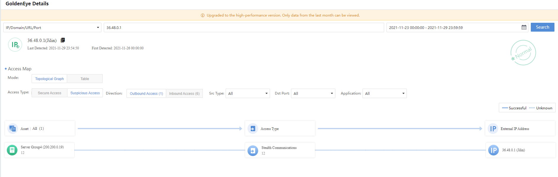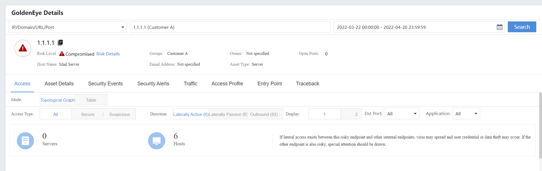 GoldenEye Traceback:A search and tracking tool integrating access relation, UEBA, and host overview. It can perform a search when finding risky hosts or malicious domains. See chapter 3.1.3 for details.