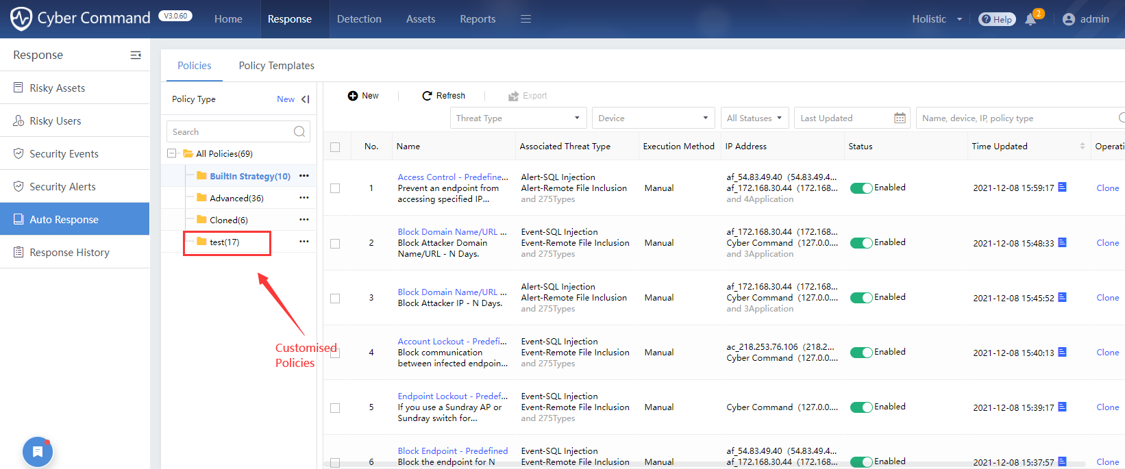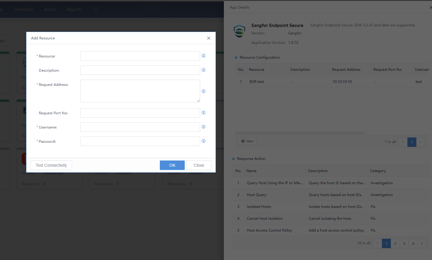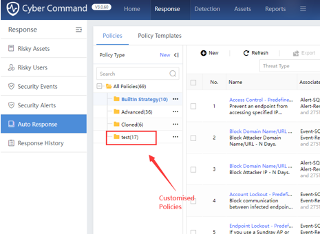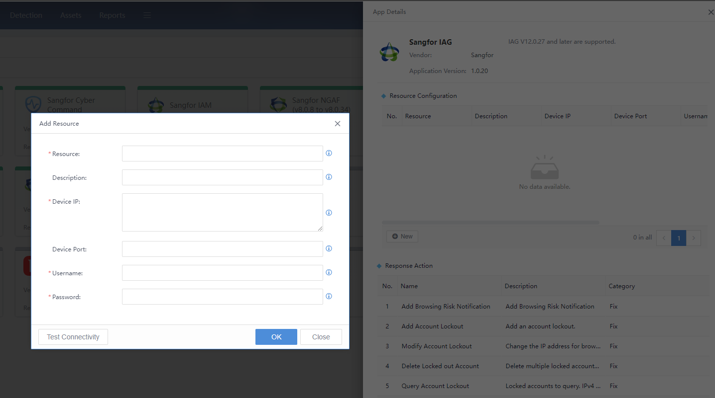 Log in to the Web UI configuration page. You will see the following configuration modules: Home,Response,Detection,Assets, Reports,Navigation, Holistic, and More.