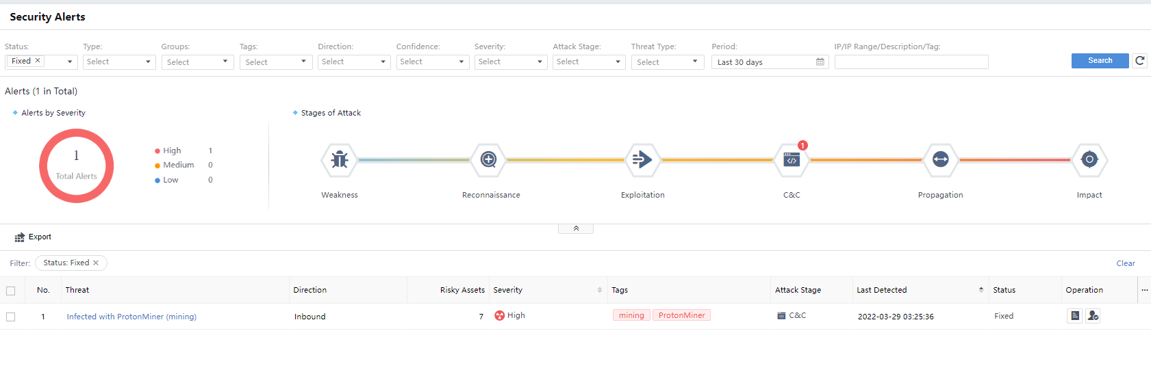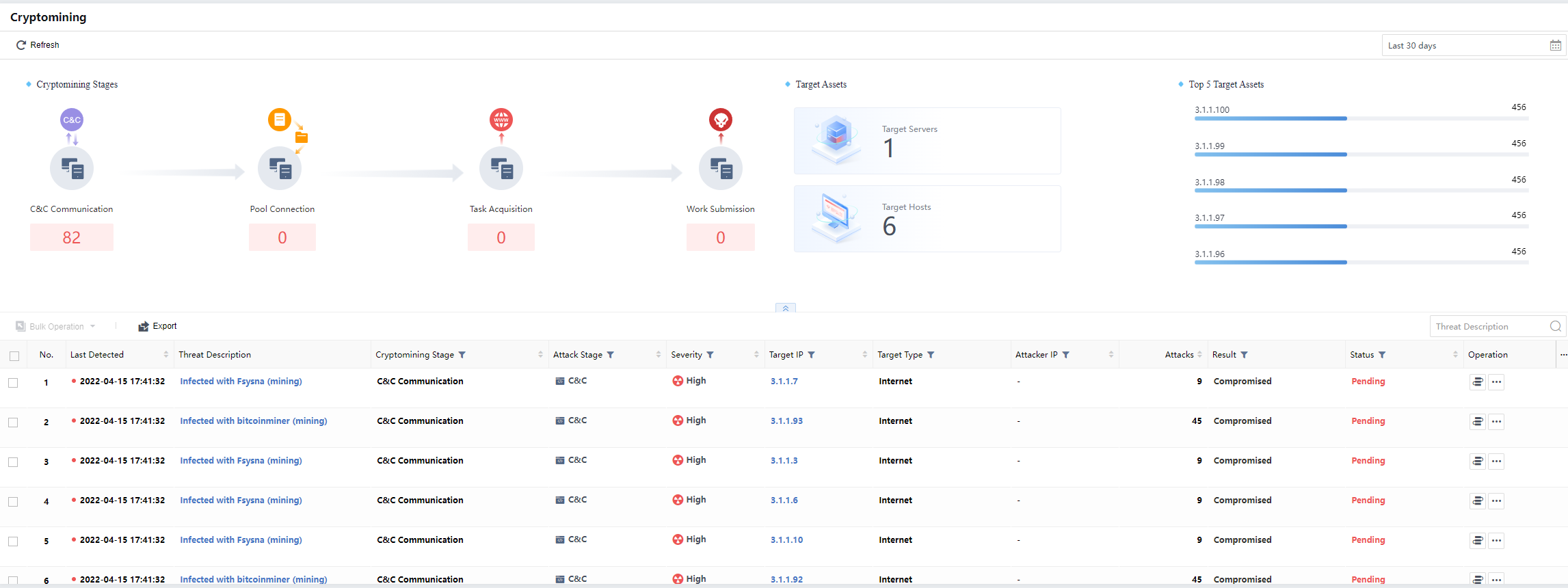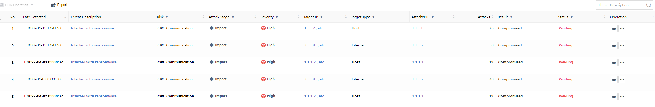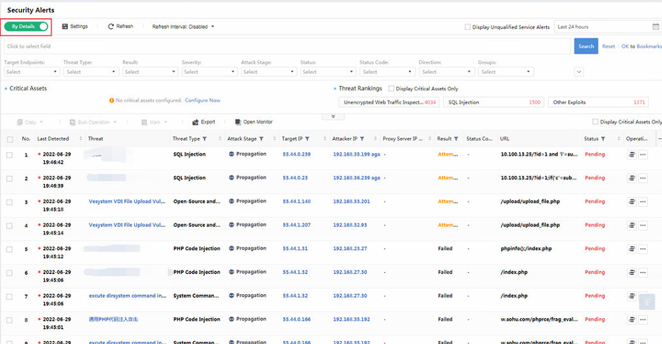 - There is a one-to-one correspondence between the types of alerts on the page and the types of threats in the processing center’s Security Incidents/Security Alerts.