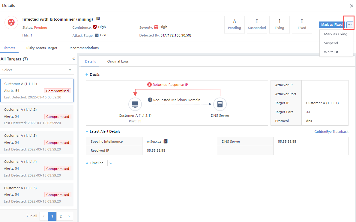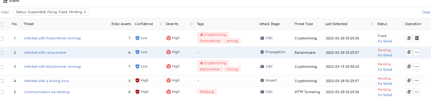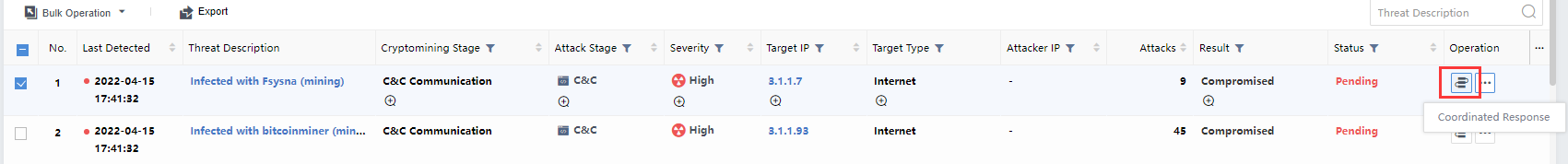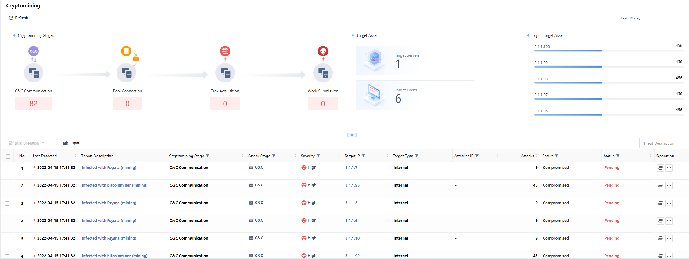 - There is a one-to-one correspondence between the types of alerts on the page and the types of threats in the processing center’s Security Incidents/Security Alerts.