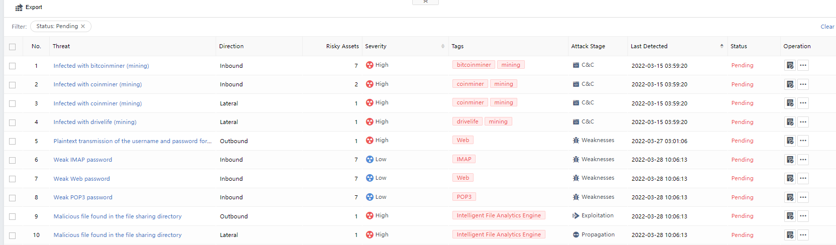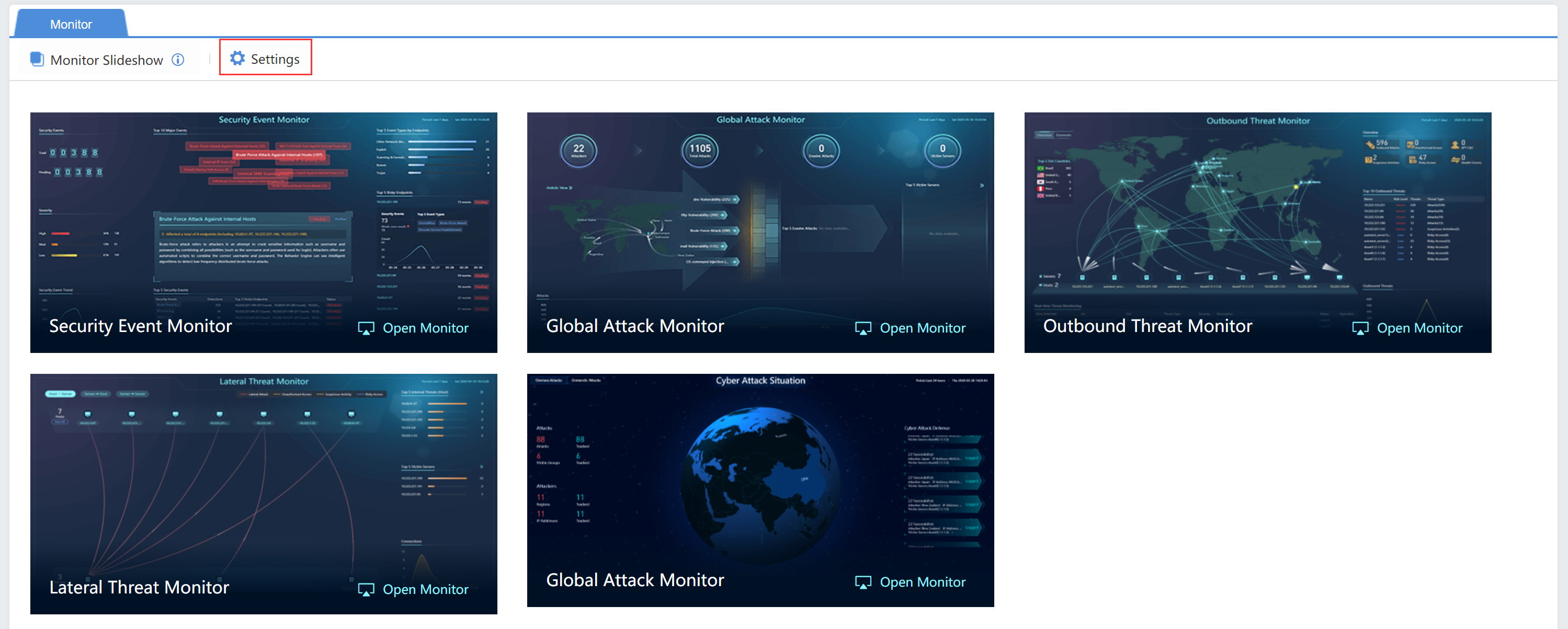 Navigate to Home > Monitor. It visually displays the security insights of the whole network from multiple aspects.