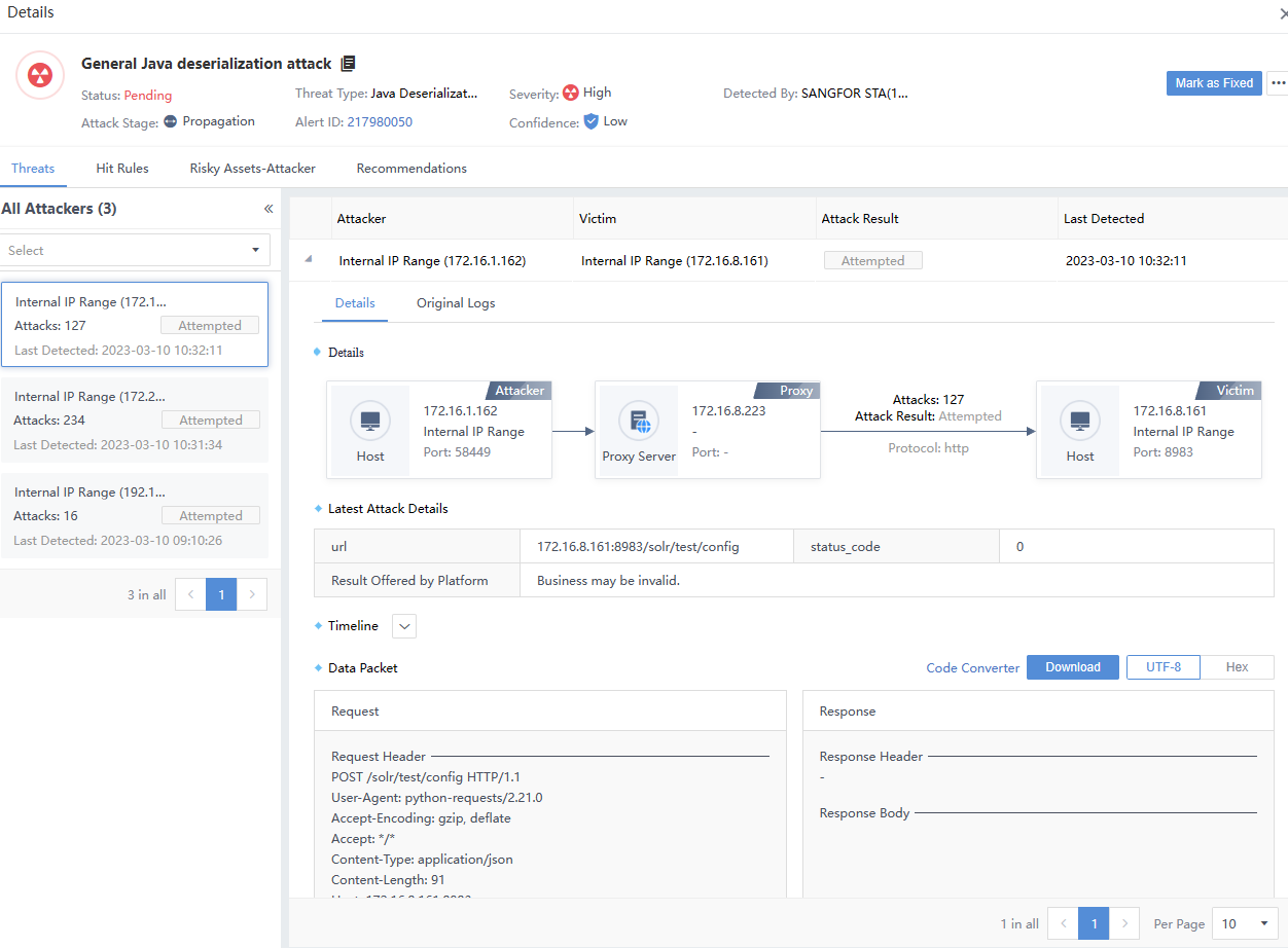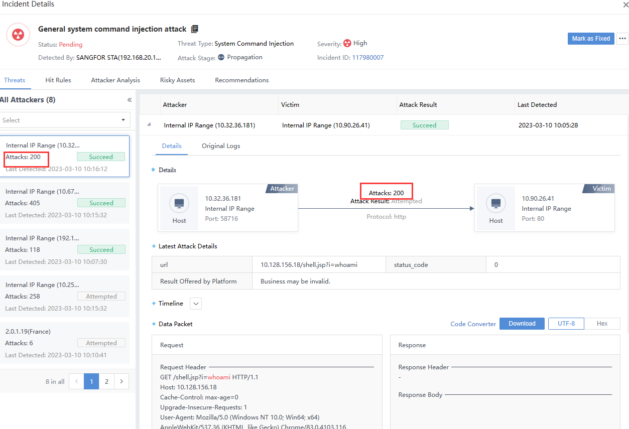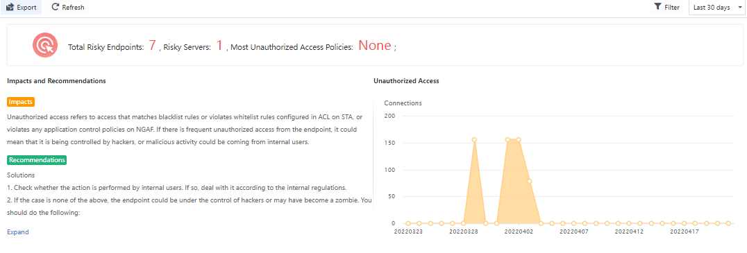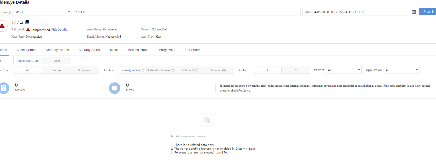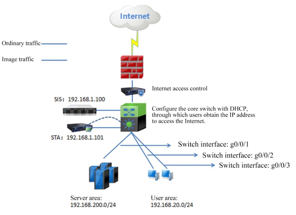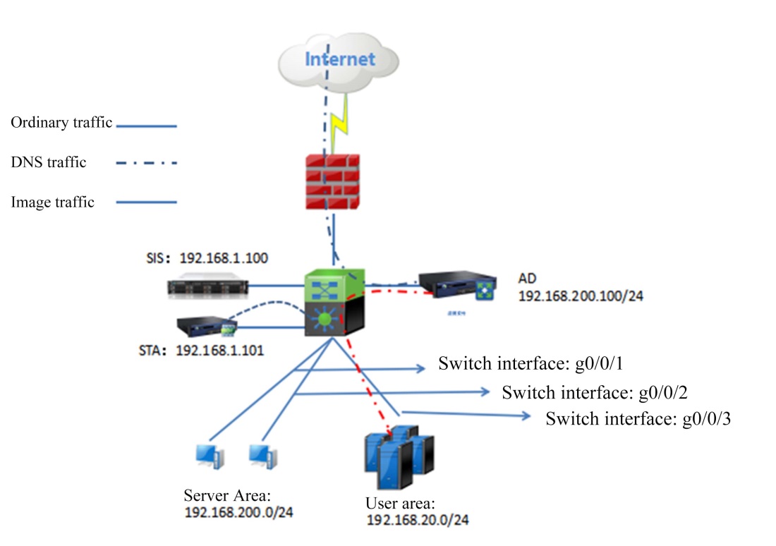 - It is recommended that the STA’s image traffic be the traffic between the server and AD, through which risky servers can be recognized. However, the risky hosts cannot be located when the STA is deployed between the AD and the Internet.