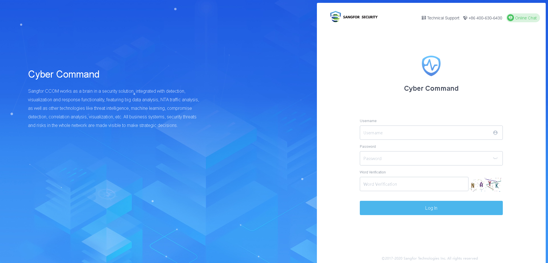 The Sangfor Cyber Command series is supplied with 110V – 230V AC power. Before powering on, please make sure the power supply has good grounding measures.