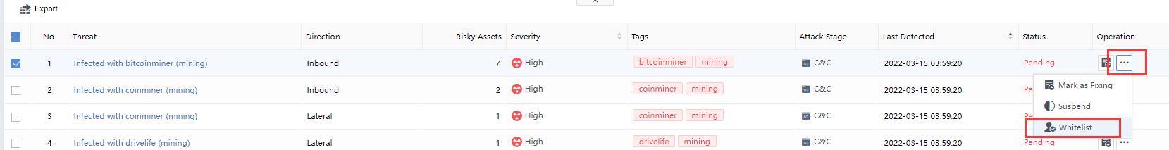 Note: Once the IP has been whitelisted, the system will filter out the matched traffic data.