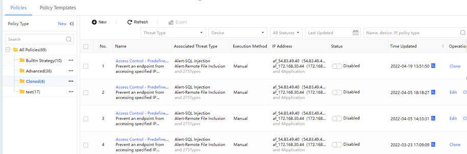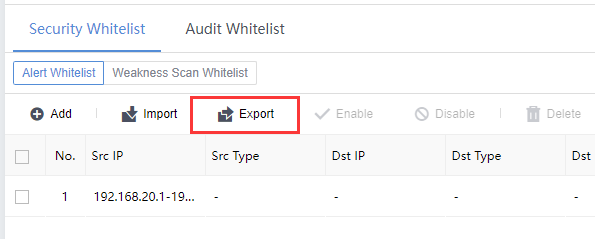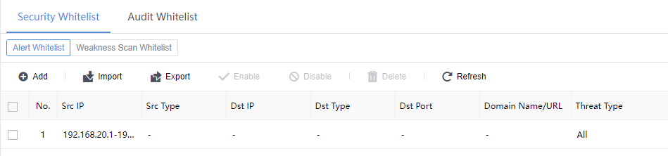 Src IP:After being added, data with this IP as the source will not record alerts.