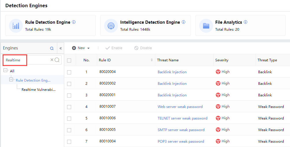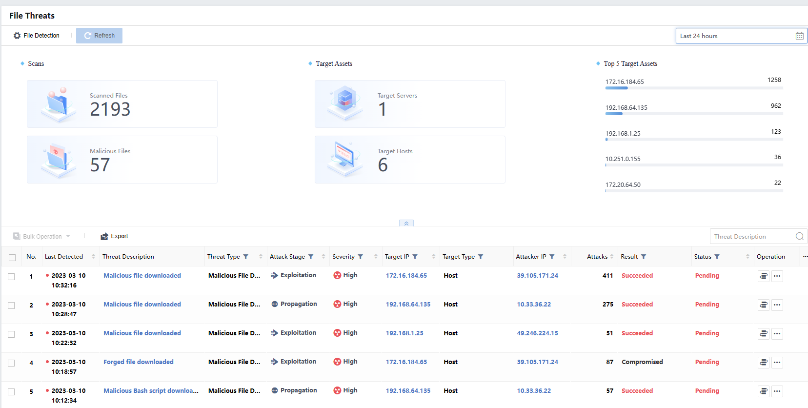 The File Detection page corresponds to the Detection>Threats>File Threats function module, as shown in the figure below.