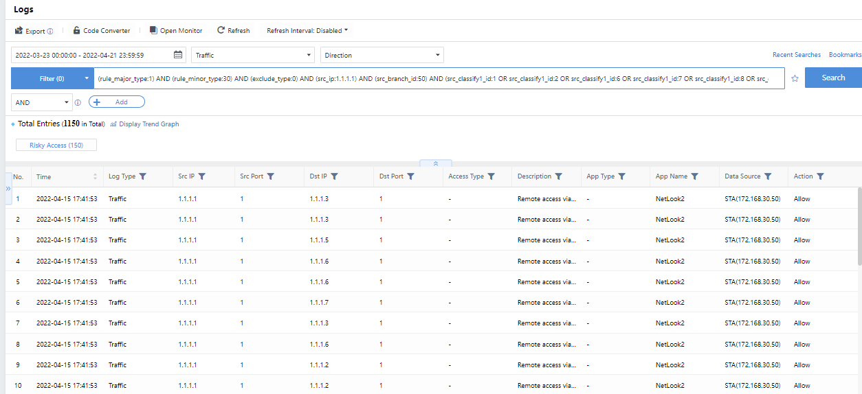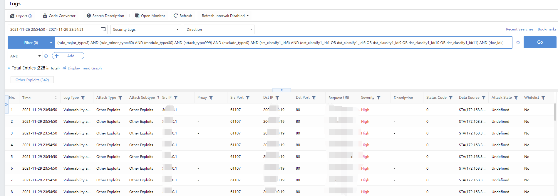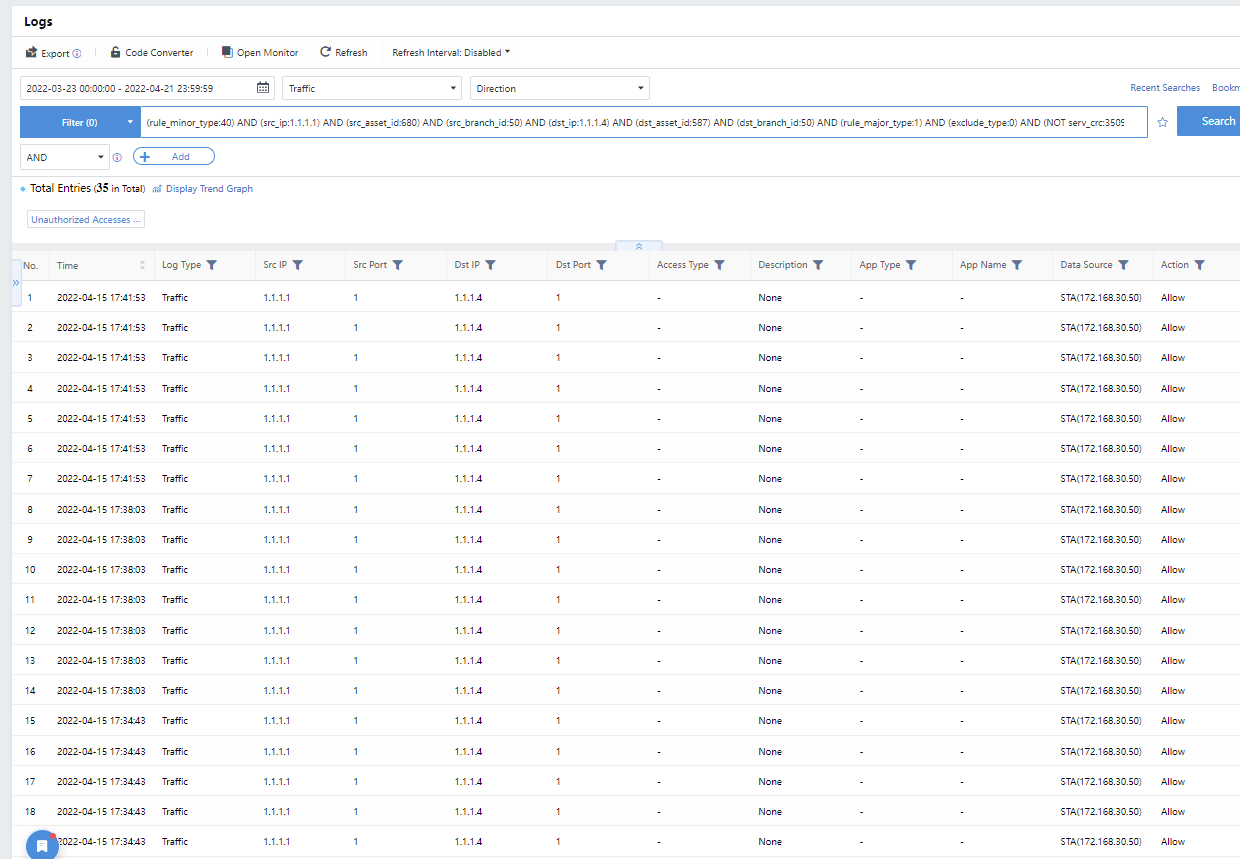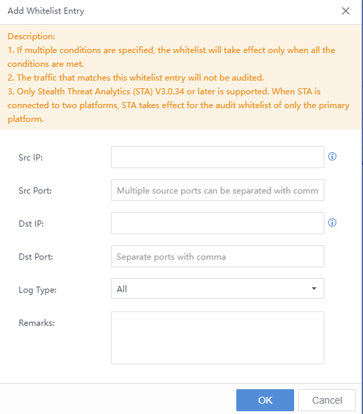 Src IP:After being added, the data with this IP as the source will not be recorded in the log.
