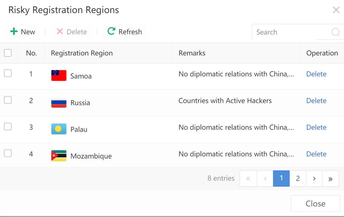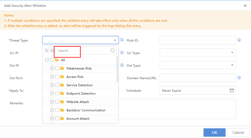 In the Risk Type drop-down list, you can perform a fuzzy search based on keywords, as shown in the figure below.
