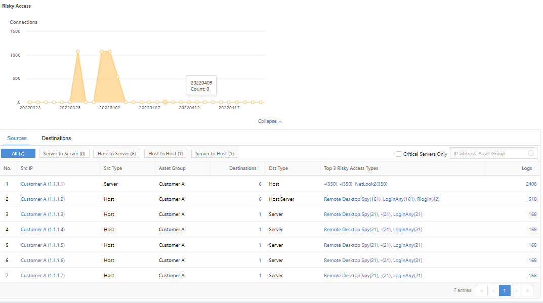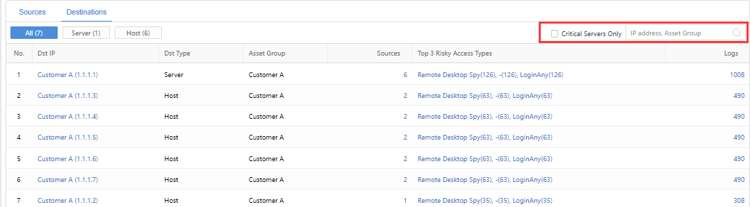 Top 5 Risky Servers: Rank the Top 5 risky servers by risk level. Servers with risk levels after the Top 5 are ranked randomly. Click View More>Response > Risky Assets to see more.