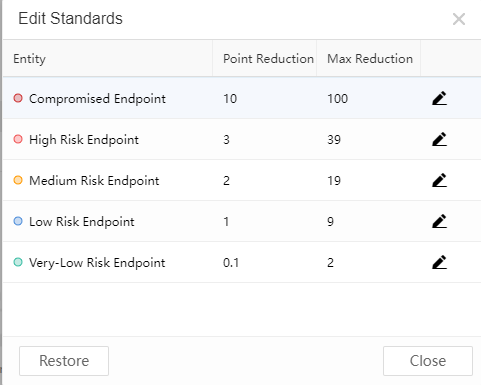 You can customize the security rating standard. When the cursor is placed over the rating, you will see the following picture: