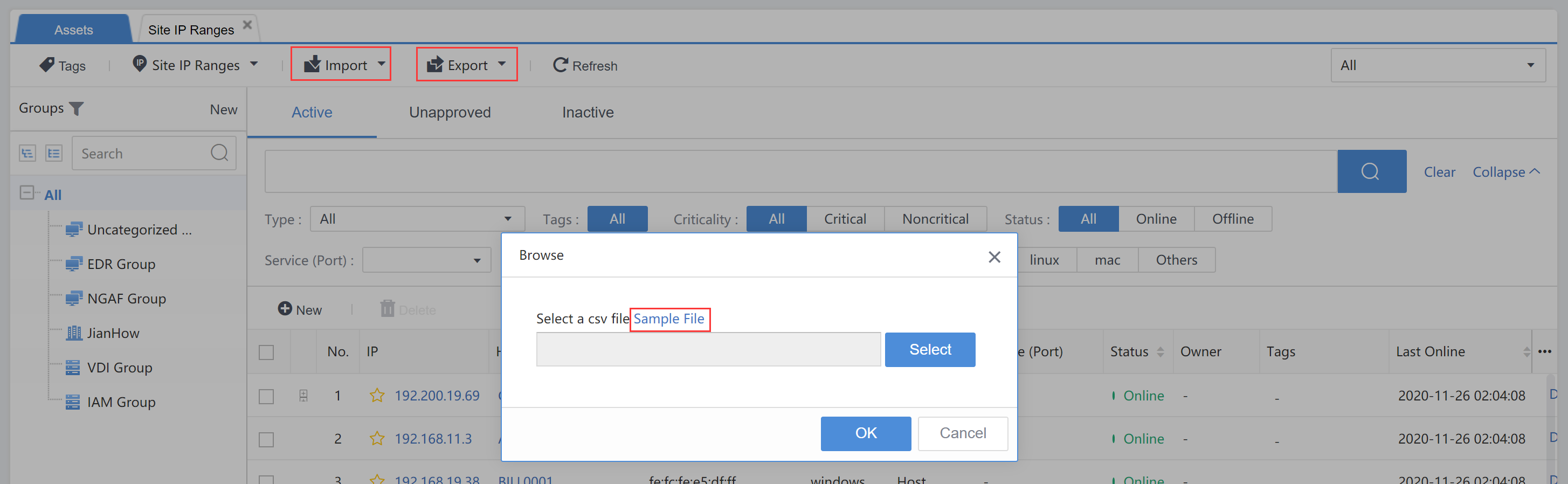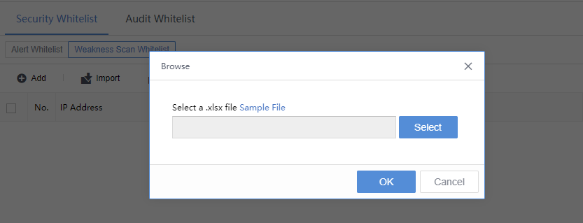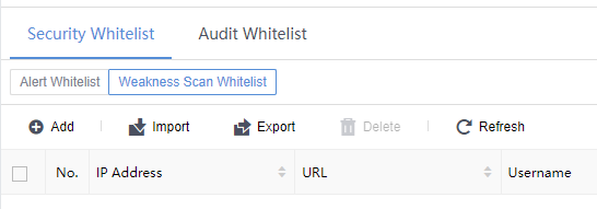 - You can import and export the Weakness Scan Whitelist configuration details in the .xlsx file.