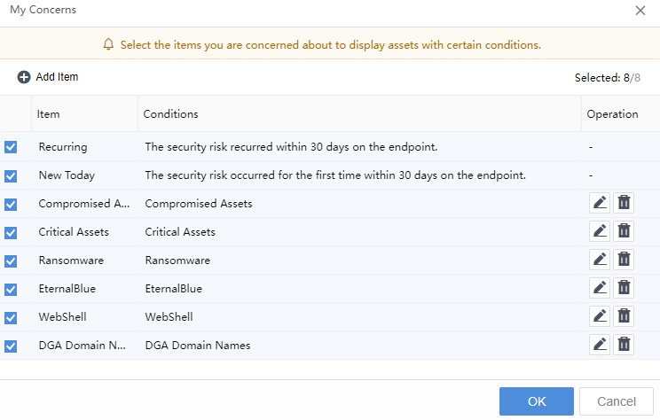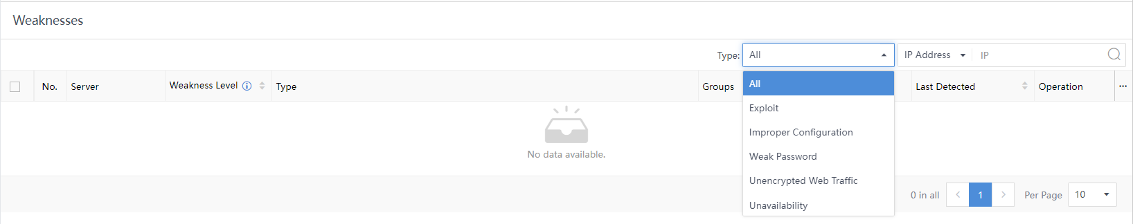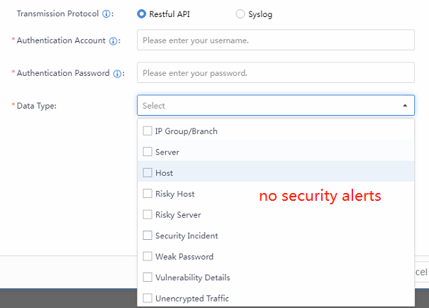 Security Whitelist:No alerts or events will be generated for the logs that match the whitelist. The platform no longer generates corresponding alerts and events, including the Security Alert Whitelist and Weakness Scan Whitelist, as shown in the figure below.