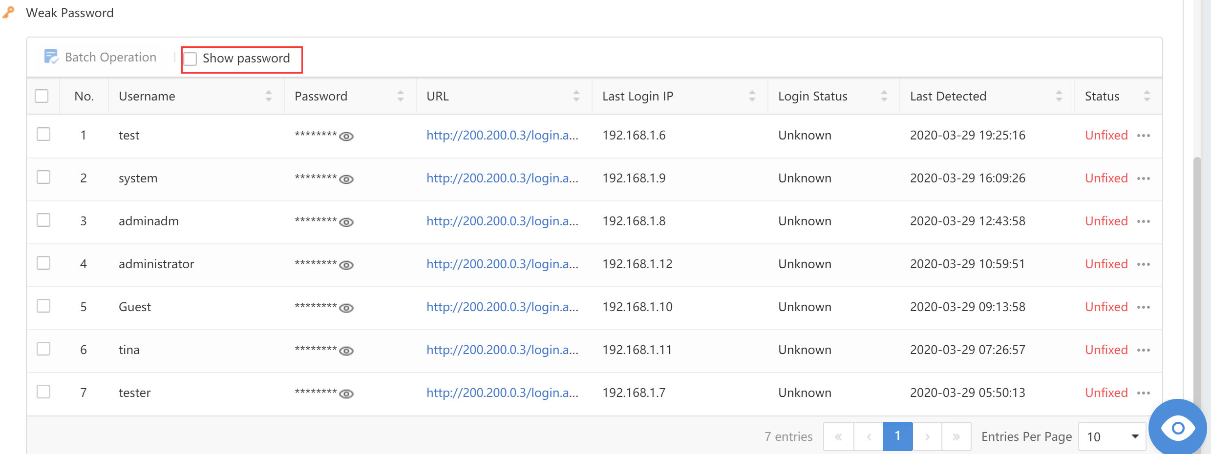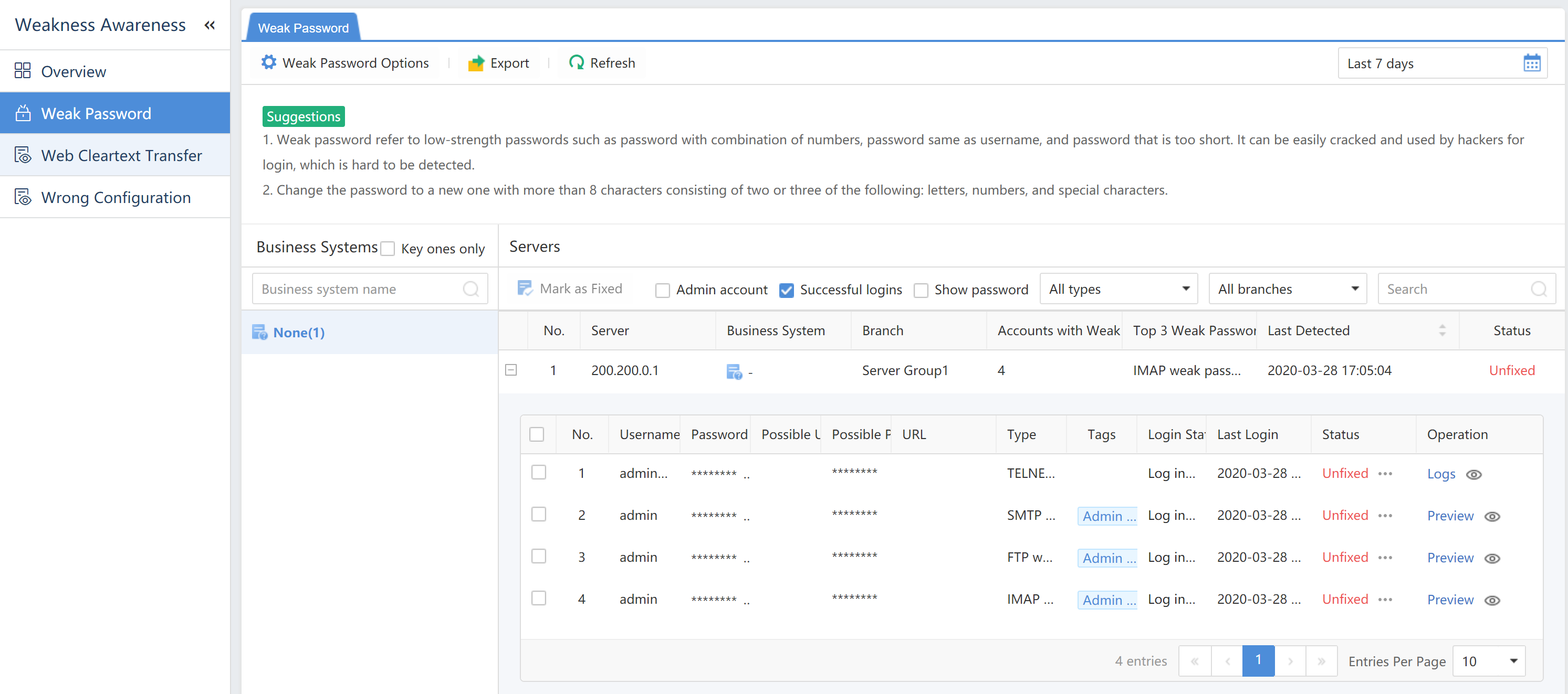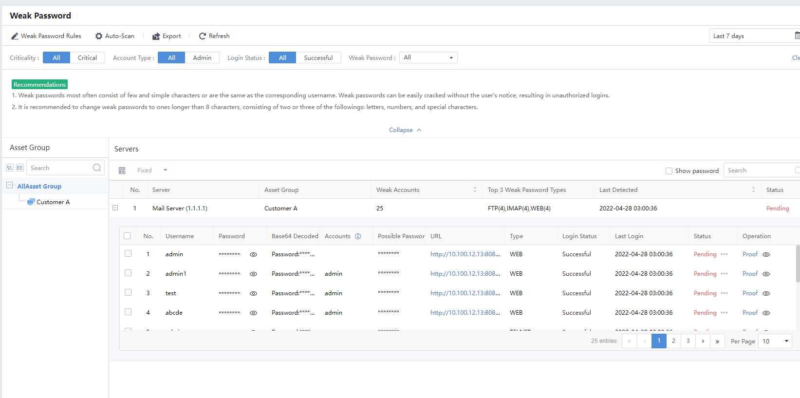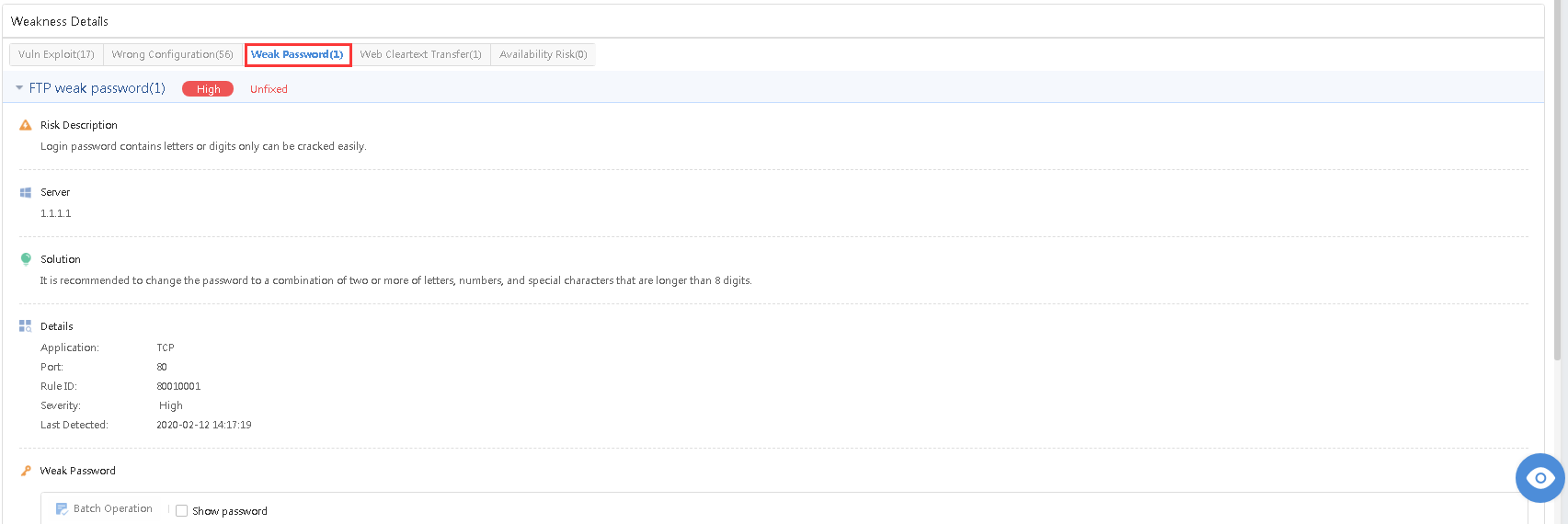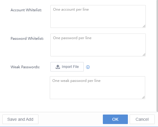 Account Whitelist:If the weak password obtained through product-side analysis does not meet the customer’s business scenario/actual status.