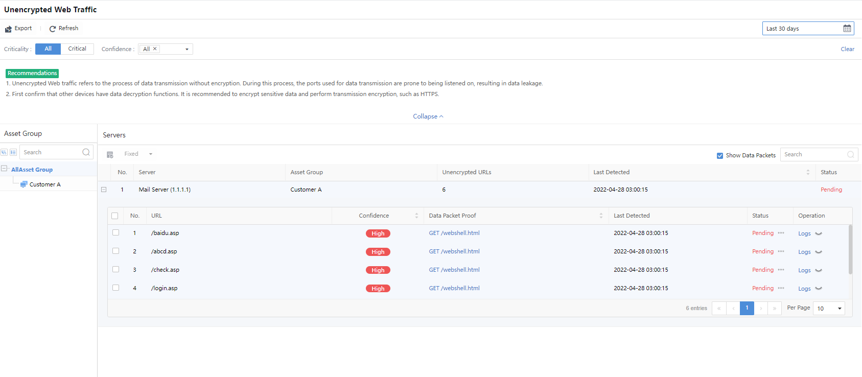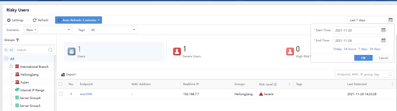 Add proxy servers, missed scanning devices, and other devices judged to be known business behaviors into the whitelist. The whitelist includes a security whitelist and an audit whitelist. The overview page is shown below.