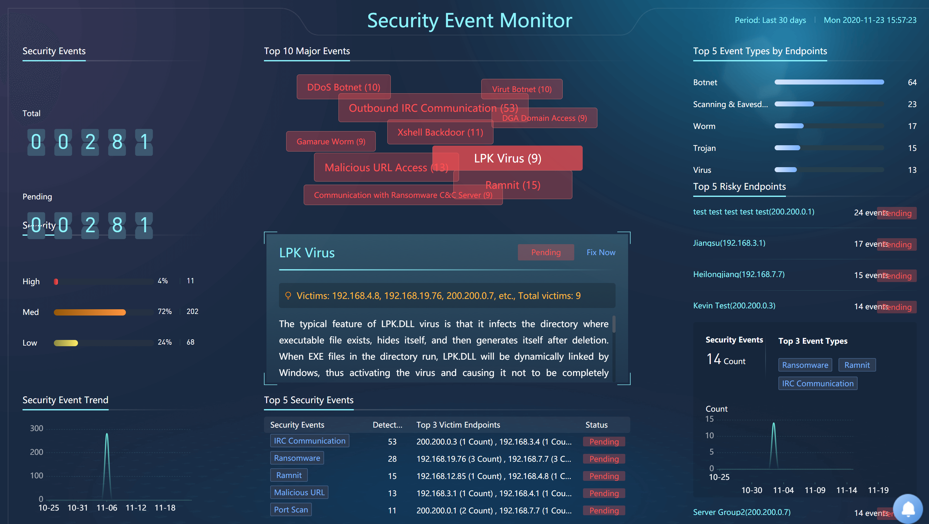 Security Incident Monitor:Display a comprehensive security situation of the whole network, and the subject can be customized.
