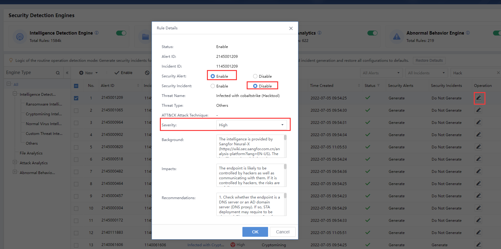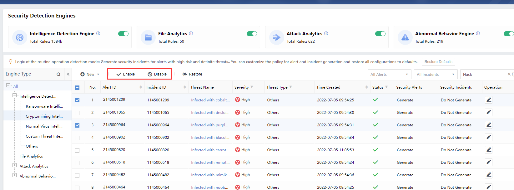 Rule ID:No alert will be recorded if the corresponding rule ID is matched.