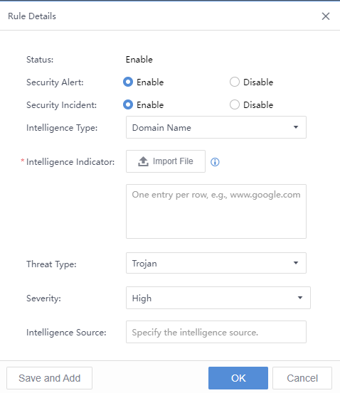 Intelligence Indicator:Import the .txt file up to 50000 IOCs.