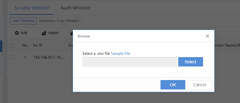 - You can import and export the Security Alert Whitelist configuration details in the .xlsx file.