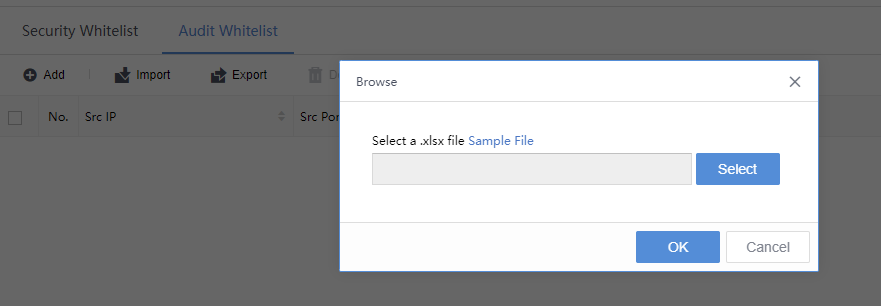 You can import and export the Audit Whitelist configuration details in the .xlsx format.