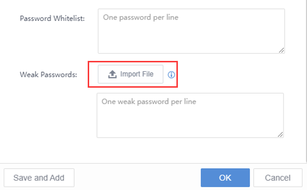 Weak Passwords:In the case of a small number, you can fill in the blank directly, or you can import in .txt format. Click Import File, as shown in the figure below.