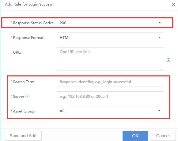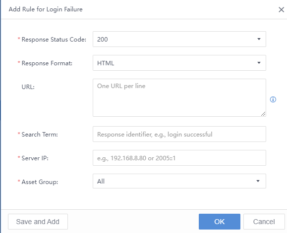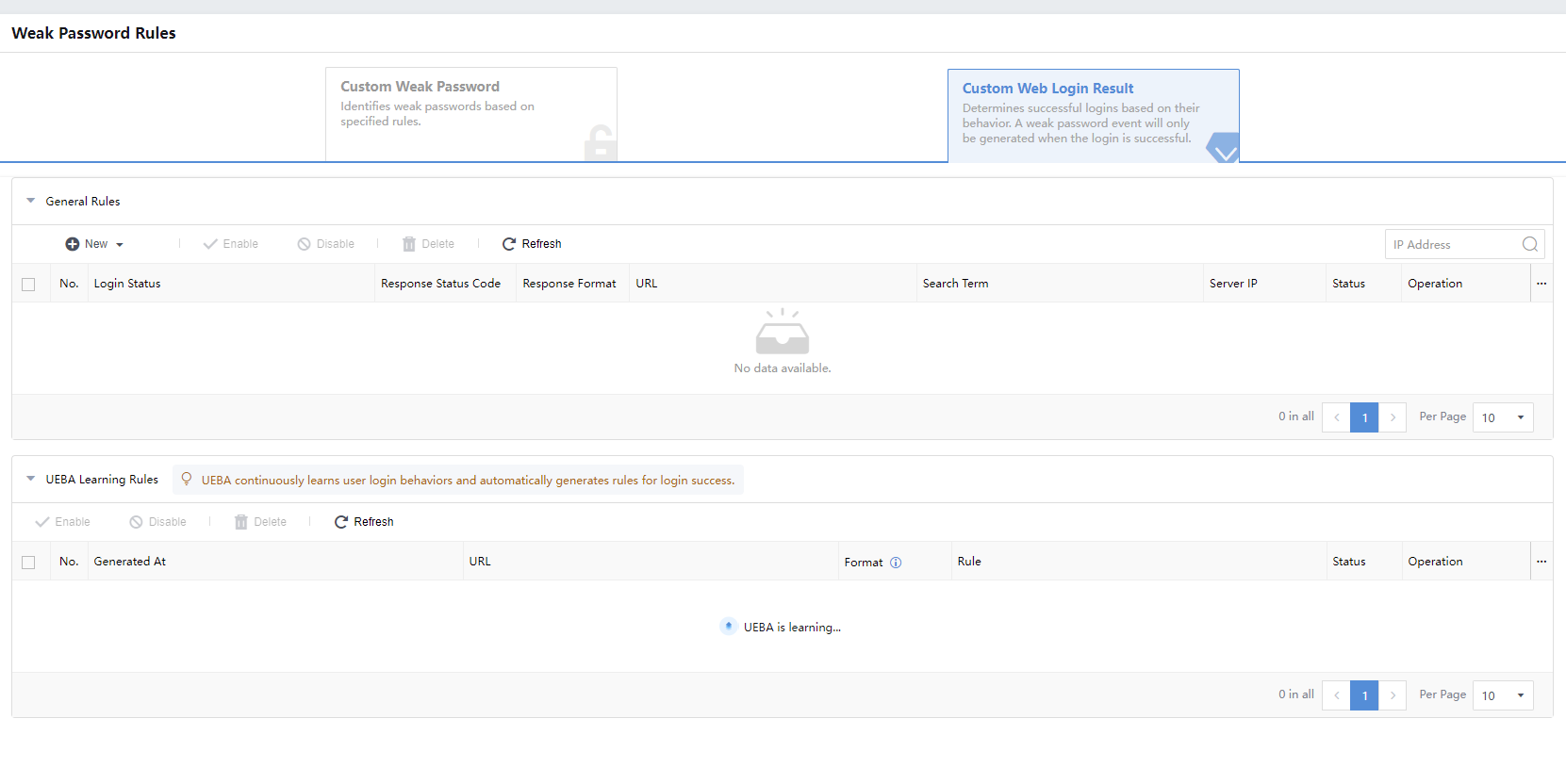 Web login results are categorized into Rule for Login Success and Rule for Login Failure. The web login success and login failure information that Cyber Command identifies in the customer’s actual network is different from the real situation of the business.