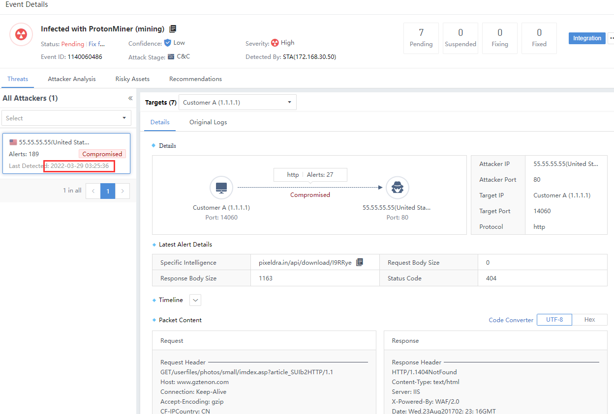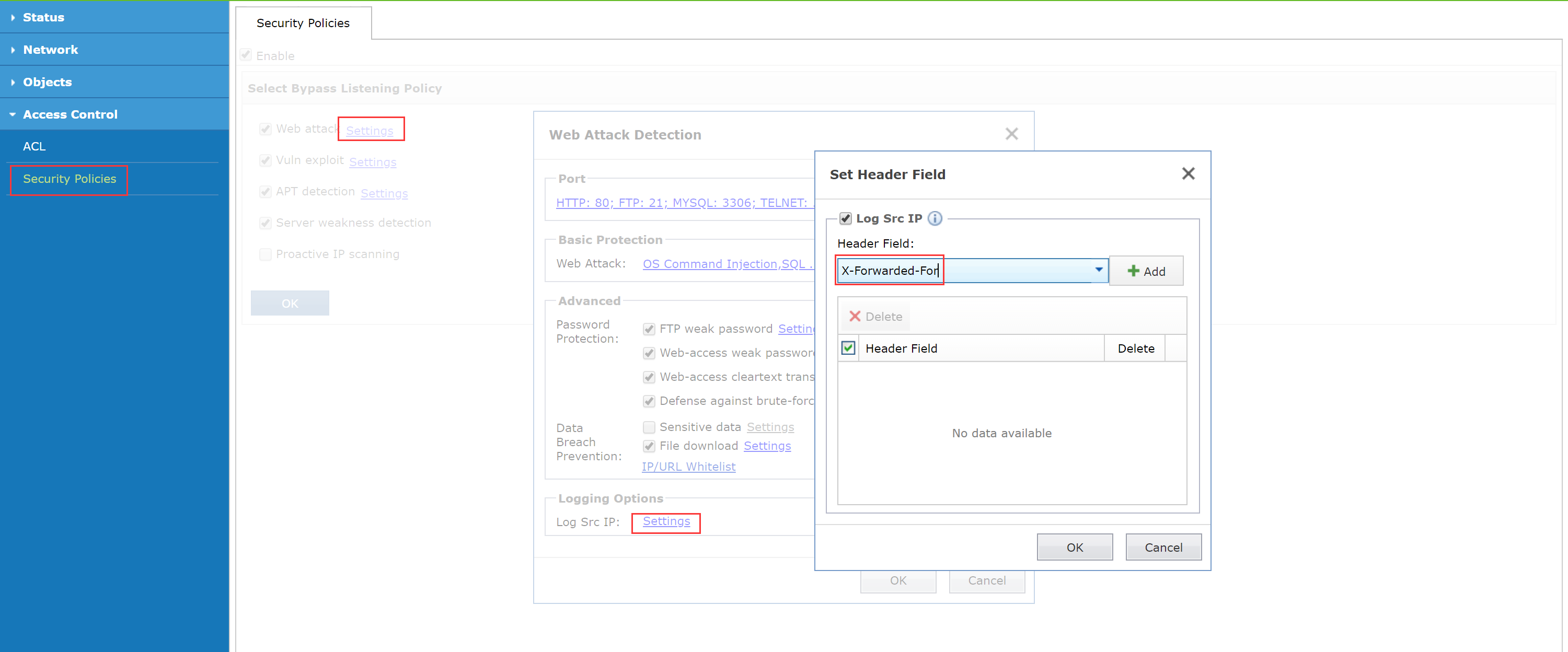 - It is recommended to enable the XFF field to detect launched attacks and recognize a source IP address of WAF attacks on the STA using the XFF.