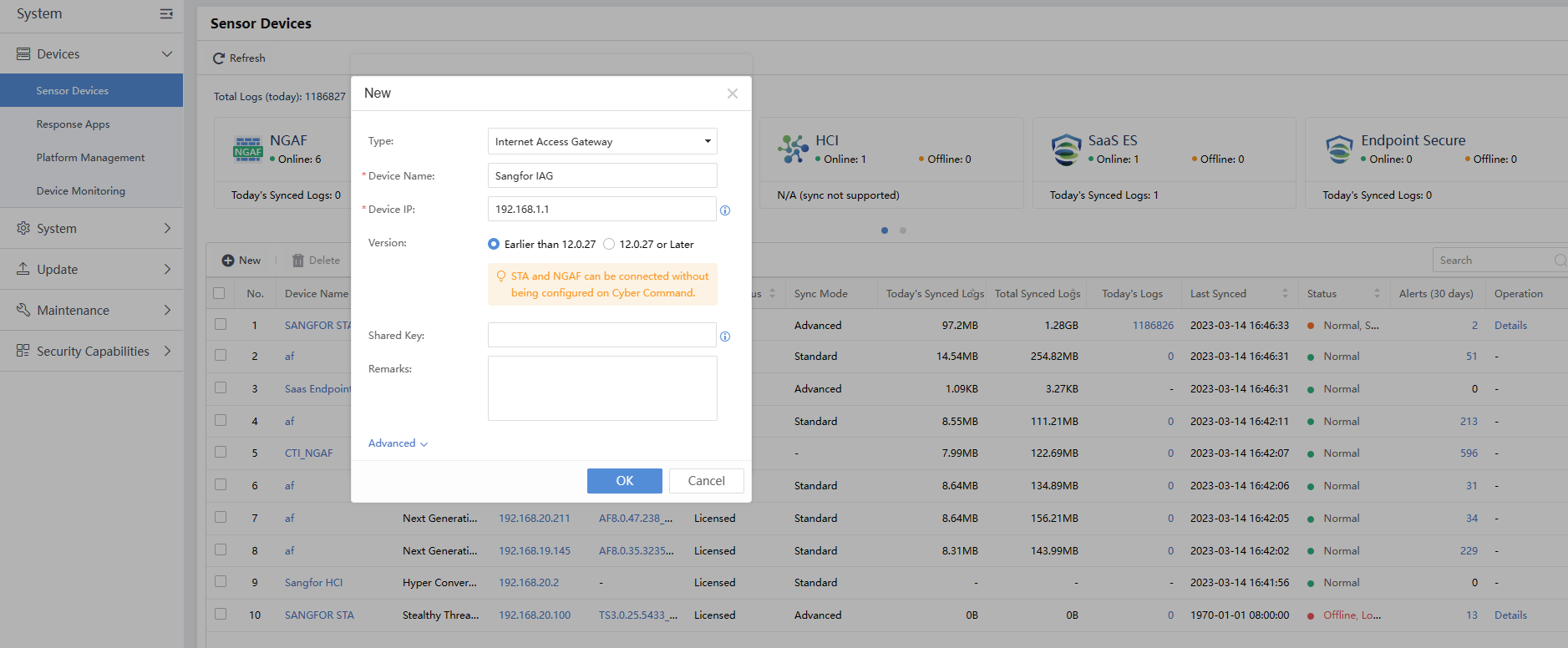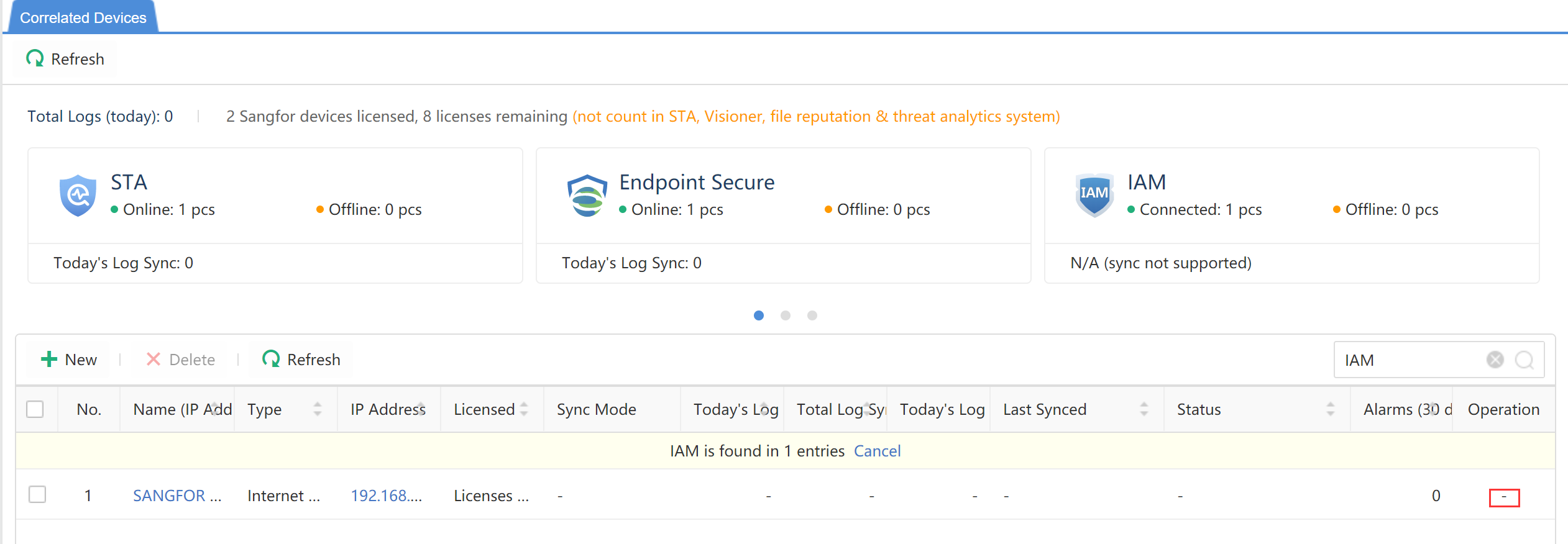 Online Effect:The device is online when IAG appears on the interface. However, the IAG does not upload the behavior logs, so all items are displayed as (-).