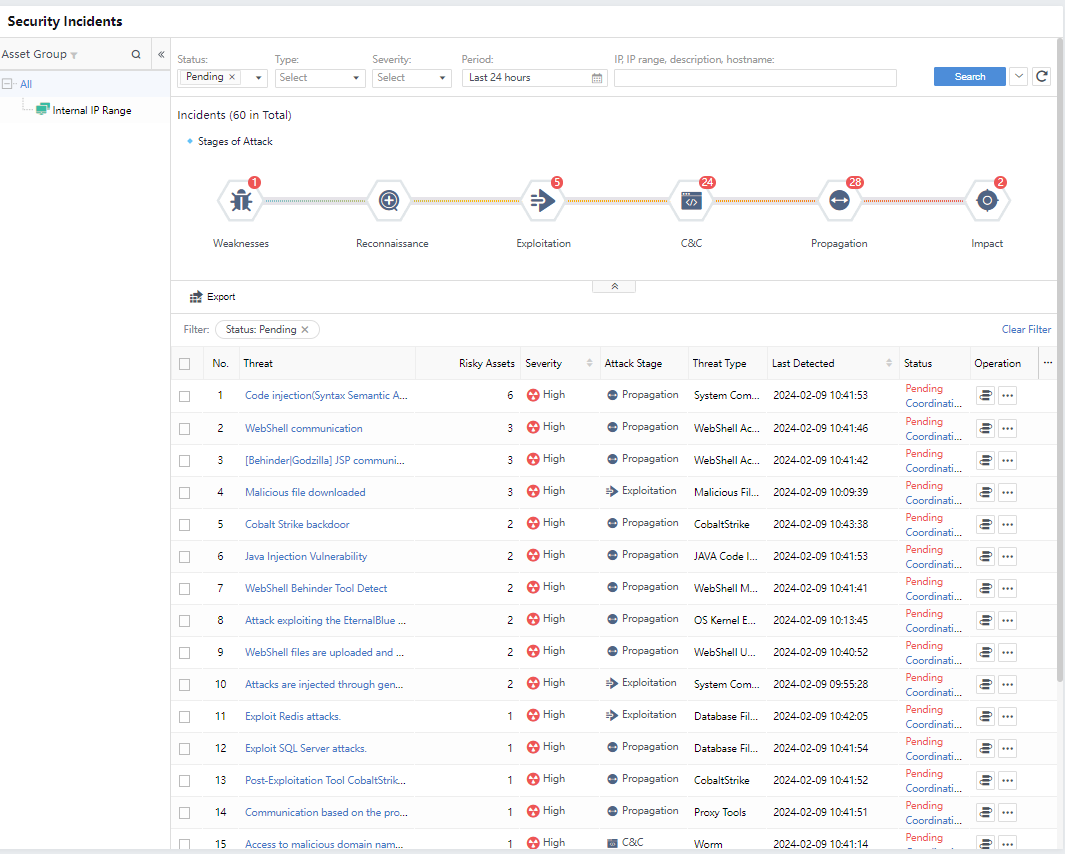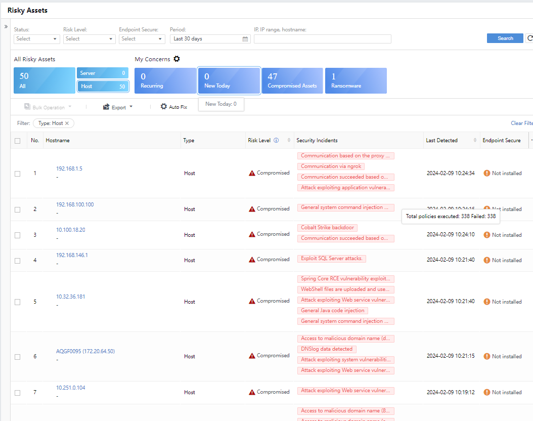 Hot Incidents:Display recent hot incidents in the cyber security industry and rapidly perceive whether they affect the network.