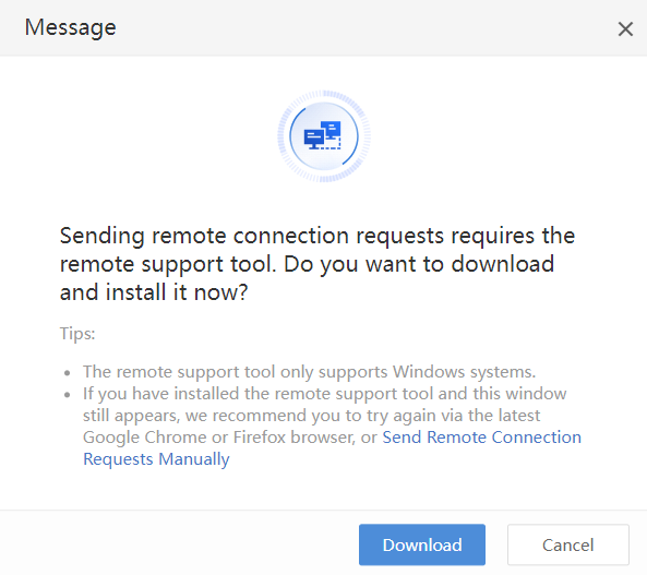 When using remote support for the first time, you need to download the VNC tool, click Download to download and install the VNC tool, as shown in the figure below.