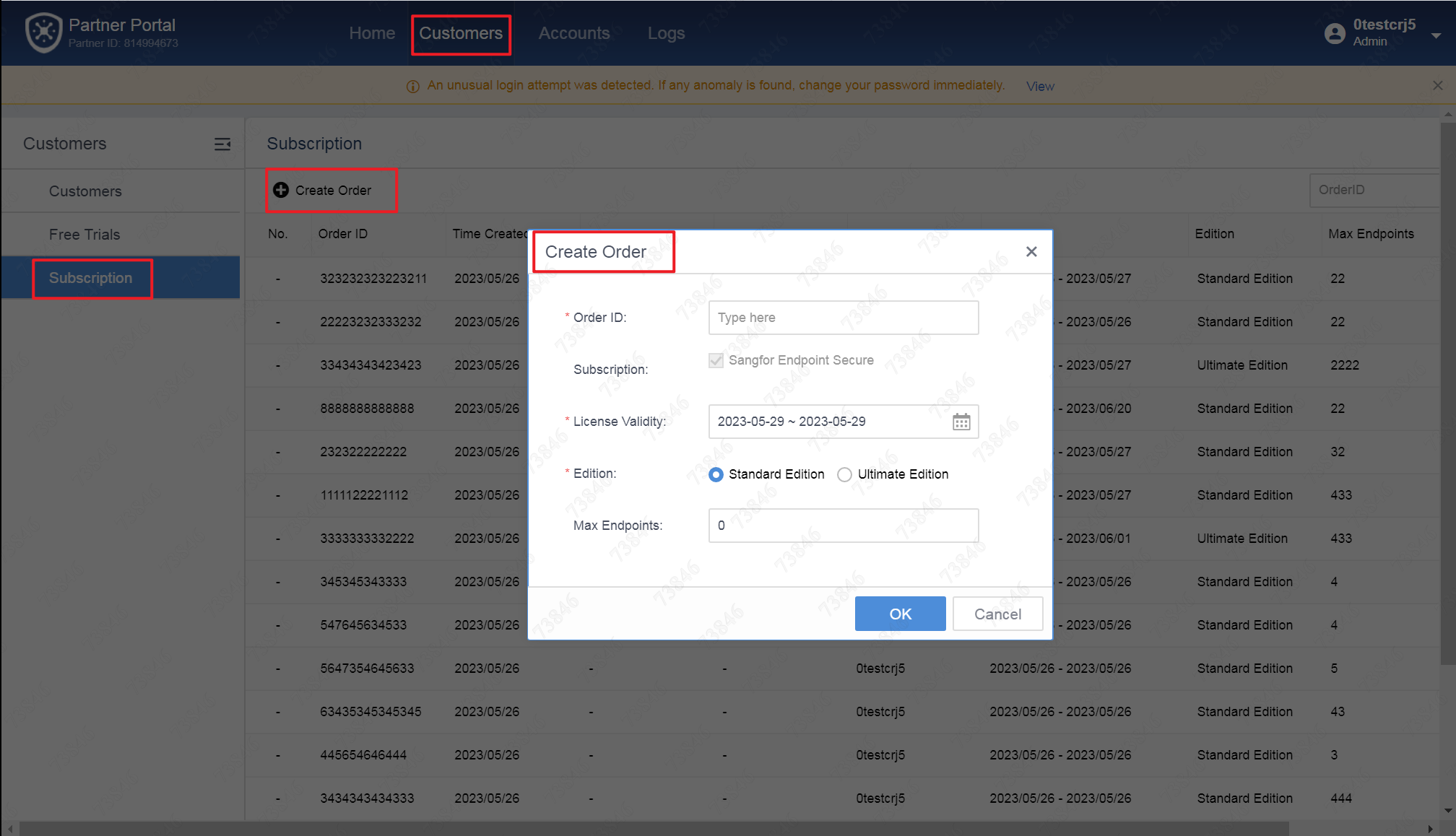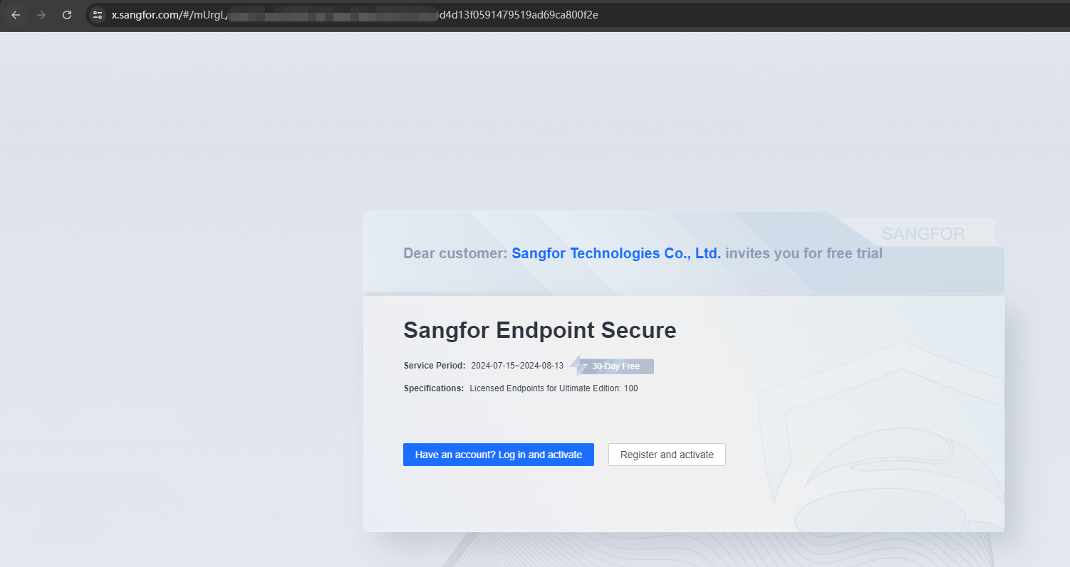 Log in to https://partner.sangfor.com/#/login. The Endpoint Secure HQ team provides the account, each office assistant will have one.