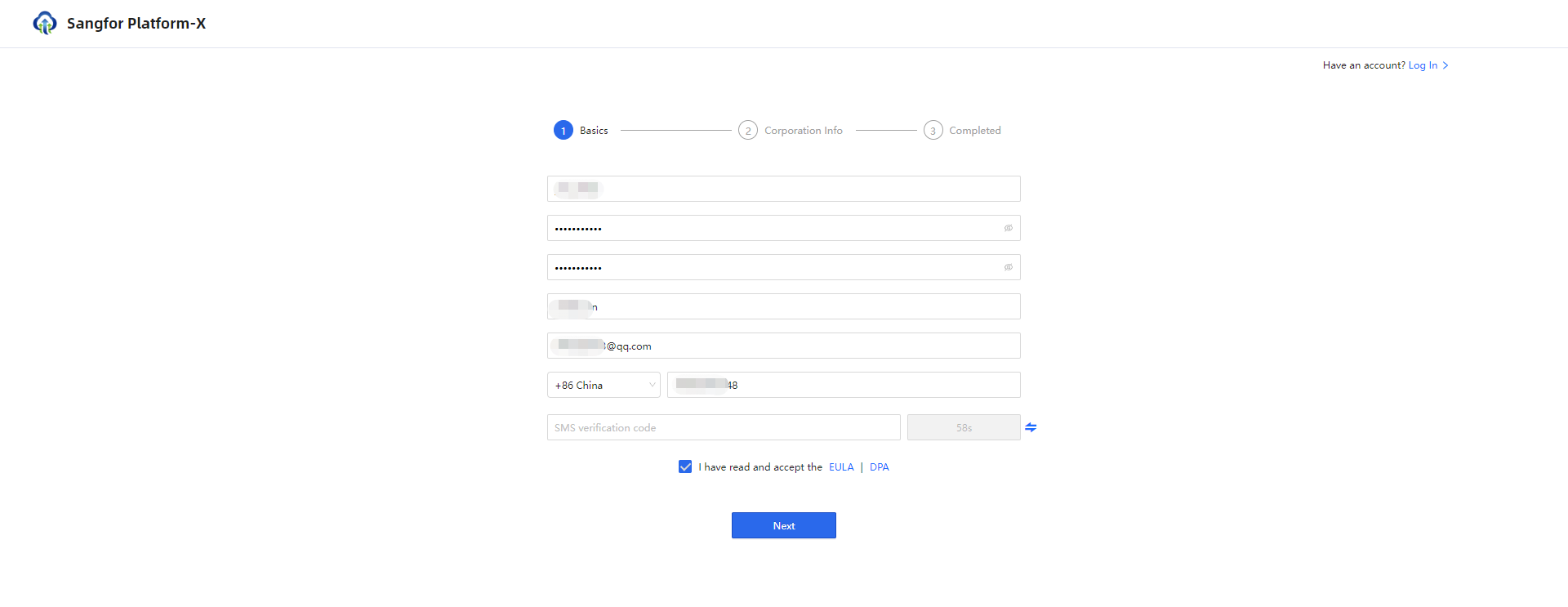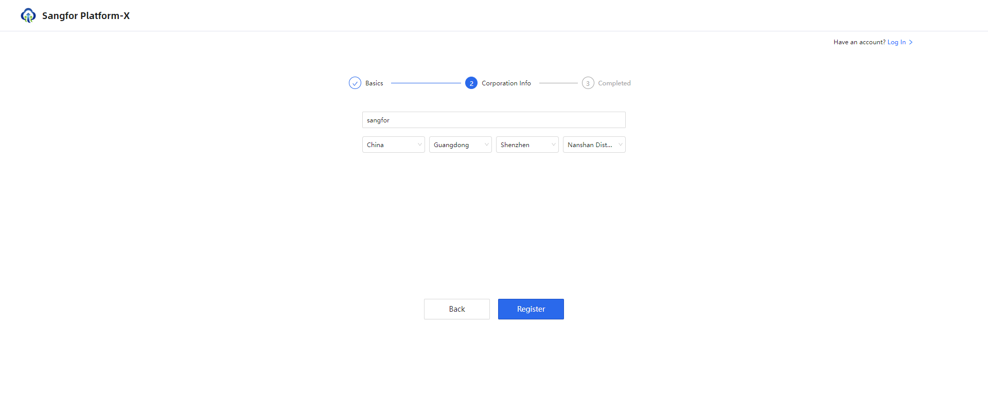 Select the corresponding application method according to the actual situation. If you already have a Platform X account, you can select Have an account? Log in and activate. You can select Register and activate if you do not have a Platform X account.The following steps explain the process for those who do not have a Platform X account: