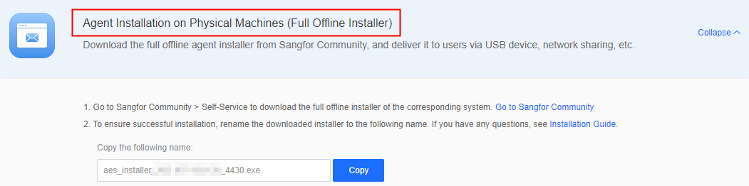 If this is SaaS-Endpoint Secure, confirm whether the newly downloaded online installer is damaged. If yes, retrieve the CorpID of Platform-X and feedback to Sangfor Technical Support.