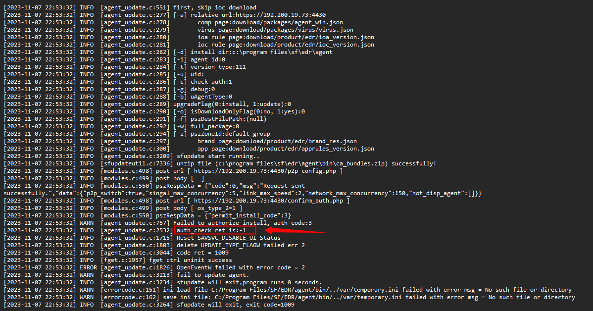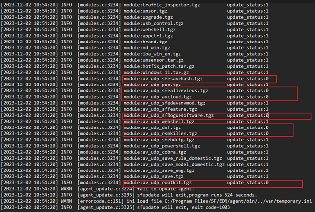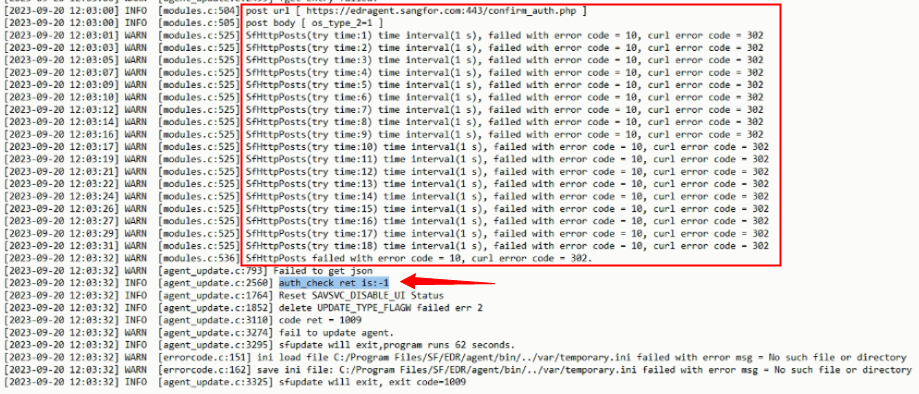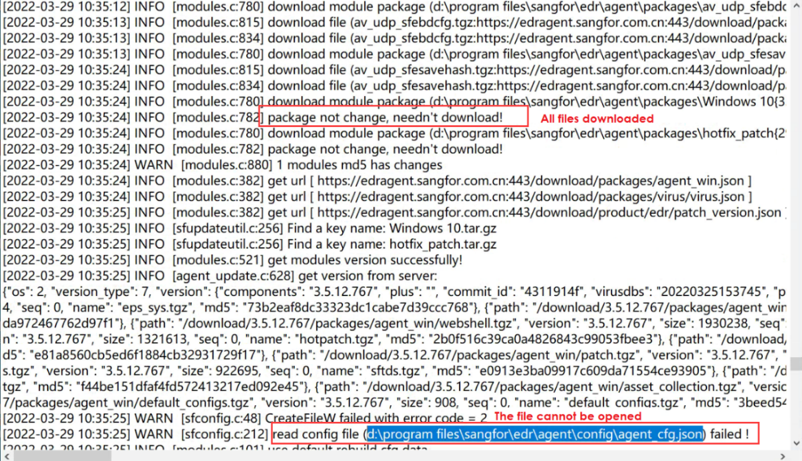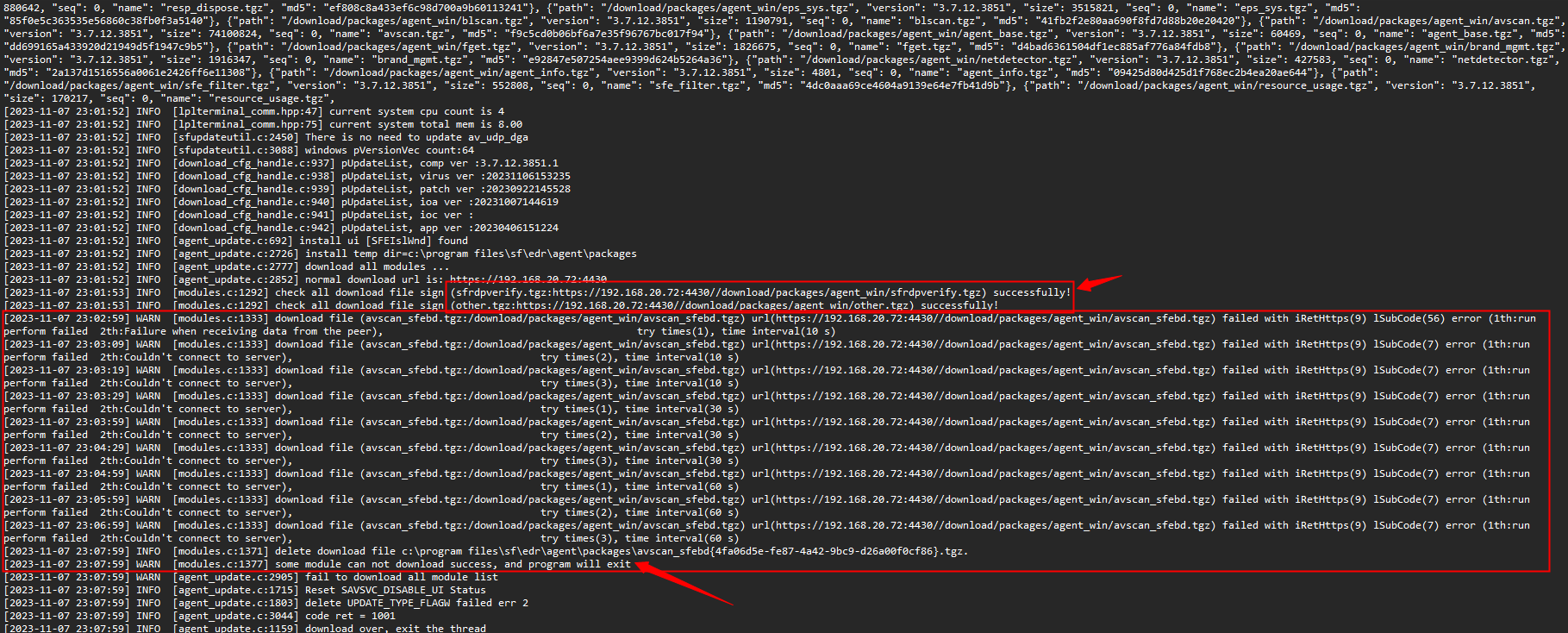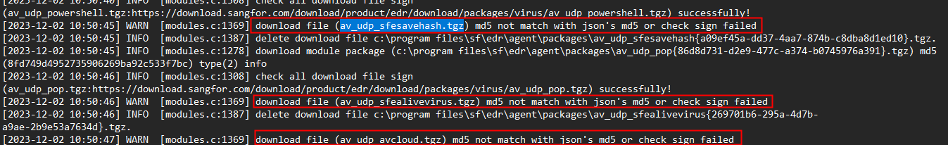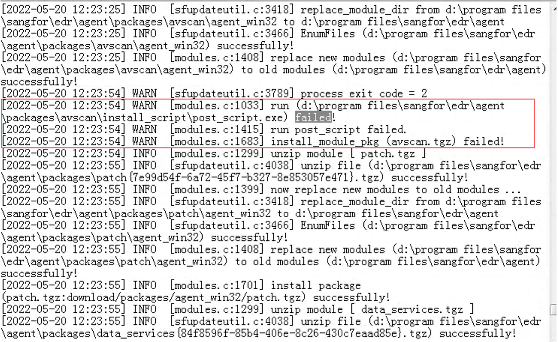 cat /sf/edr/agent/var/log/sfupdate/script.txt |grep fail