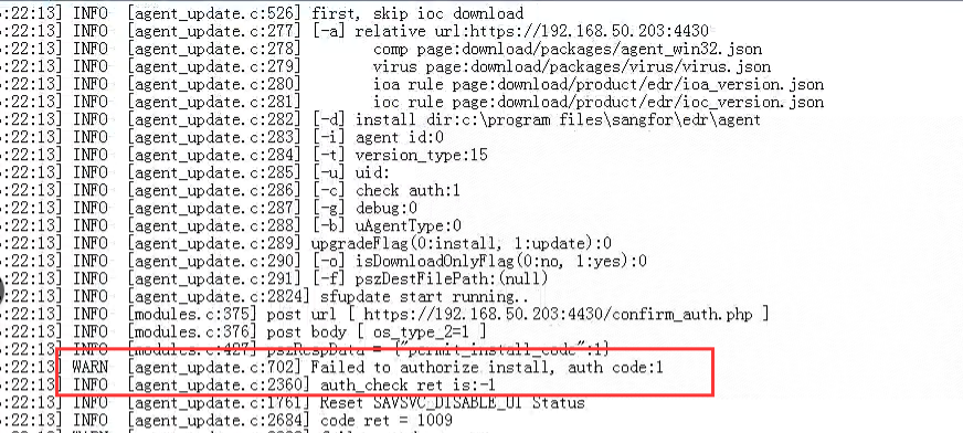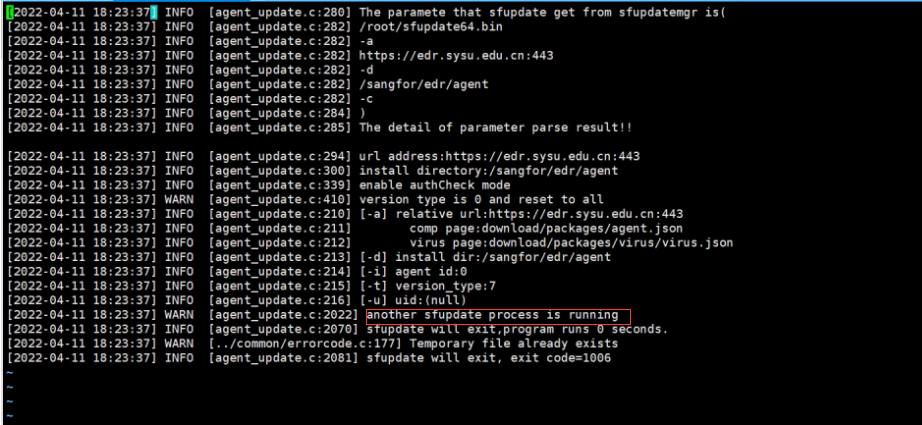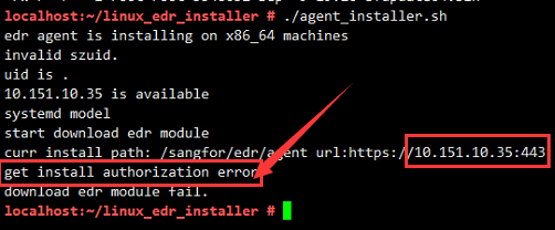 | ERR_ALREADY_INSTALL=1010 | Agent exists. | /etc/cron.d/edr_agent file exists |