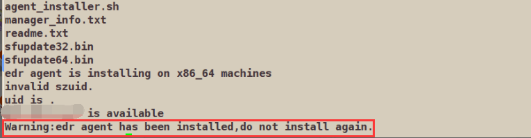 Linux agent installation prompts "edr agent has been installed, do not install again".