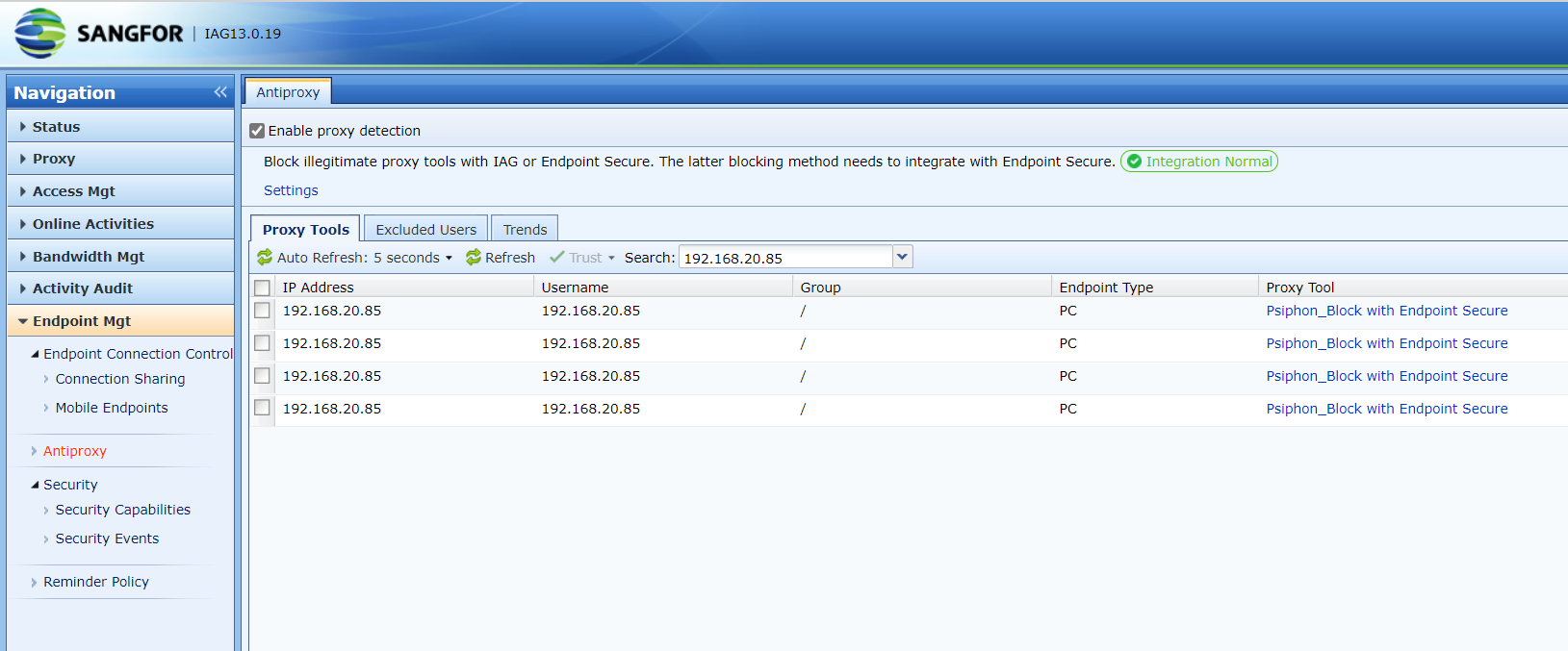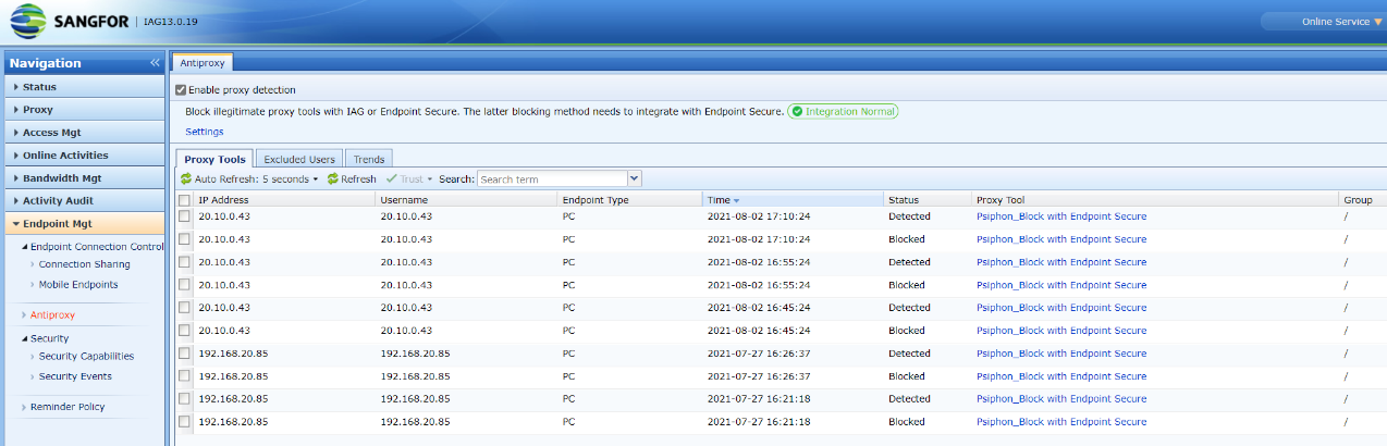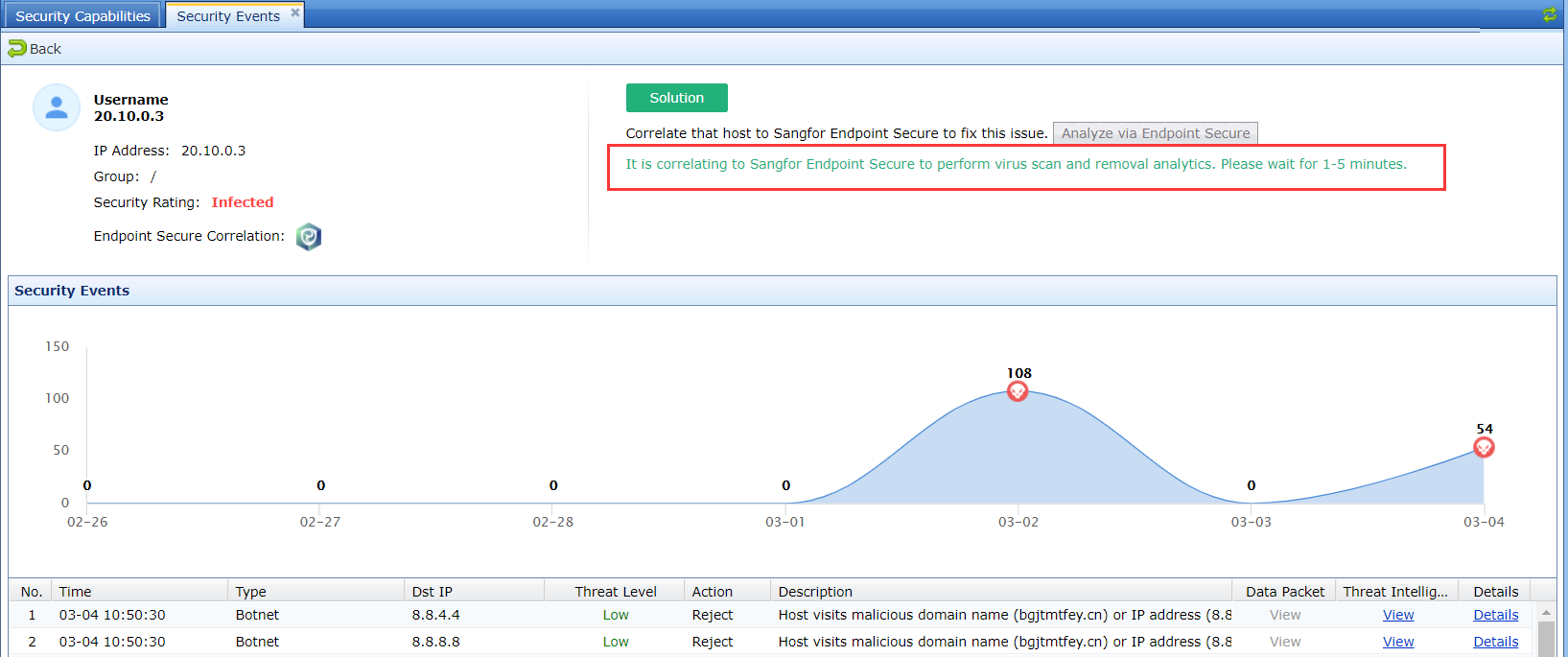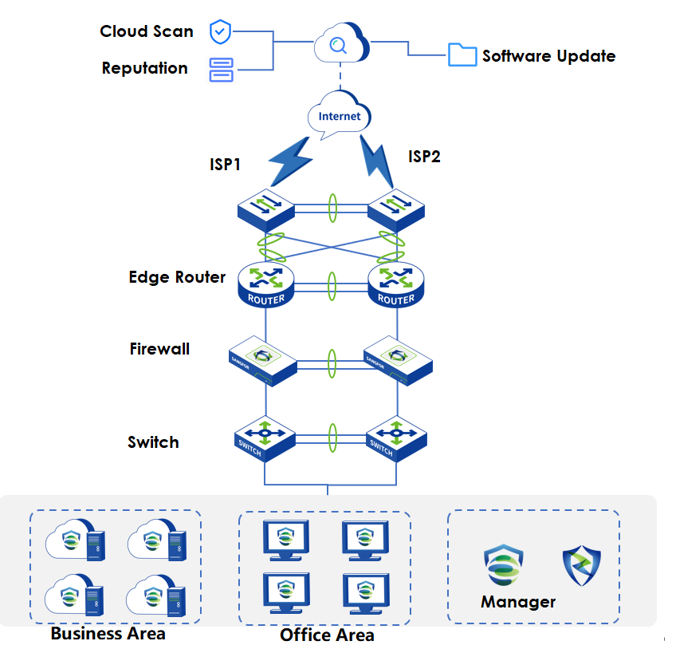 Endpoint Secure Agent provides antivirus protection, intrusion defense, firewall isolation, data collection and reporting, and one-click security event handling. In addition, Endpoint Secure can seamlessly integrate with Sangfor network security products such as Network Secure, Internet Access Gateway (IAG), Cyber Command, forming a next-gen, integrated security protection system that facilitates the sharing of security data, the collaboration between network security products, and the resolution of security events.