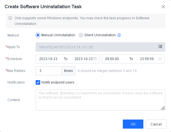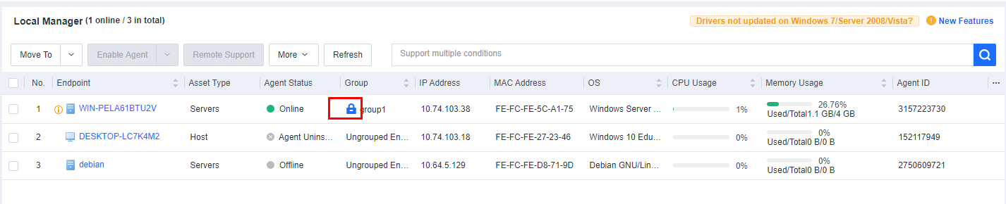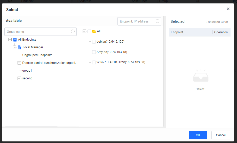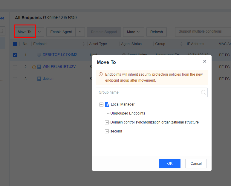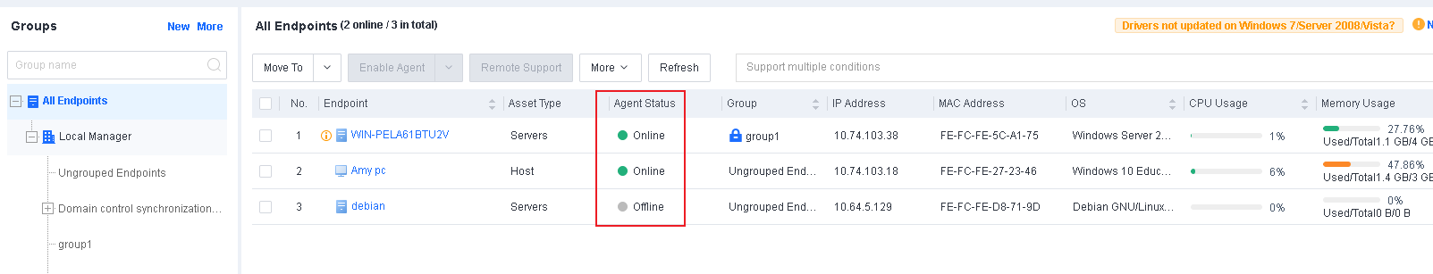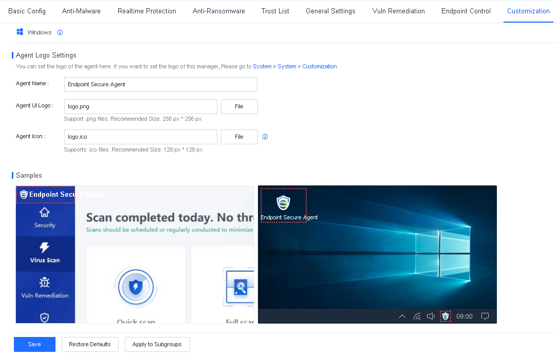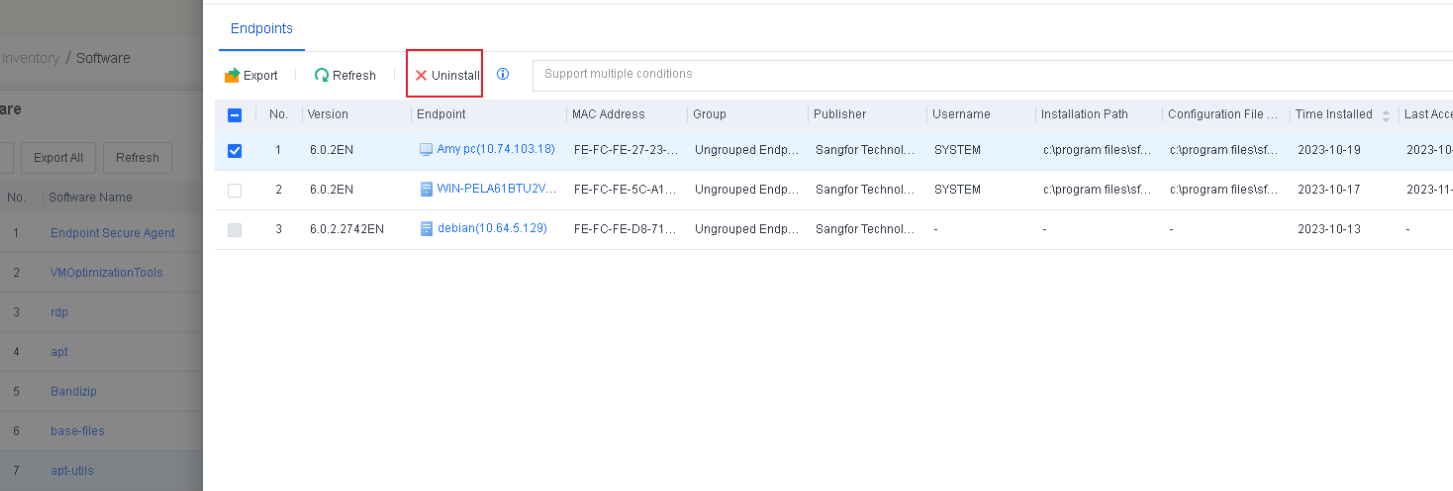 Log in to Endpoint Secure Manager. Go to Endpoint > Endpoint Groups and disable Endpoint Secure Agent on the endpoint, as shown in the following figure. If the errors persist after Endpoint Secure Agent is disabled, contact your service provider.