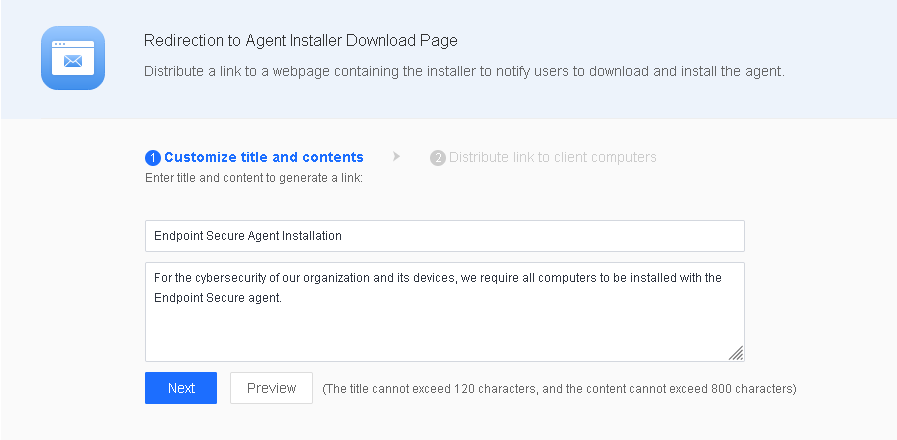 To avoid network congestion, you can specify the maximum number of endpoints that can download the Endpoint Secure Agent installer at the same time. We recommend that you set the maximum number of concurrently updated endpoints to 5 or less if the network bandwidth is 100 Mbps and 30 or less if the network bandwidth is 1000 Mbps.