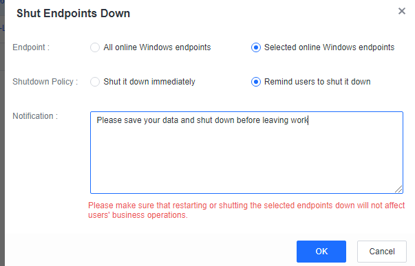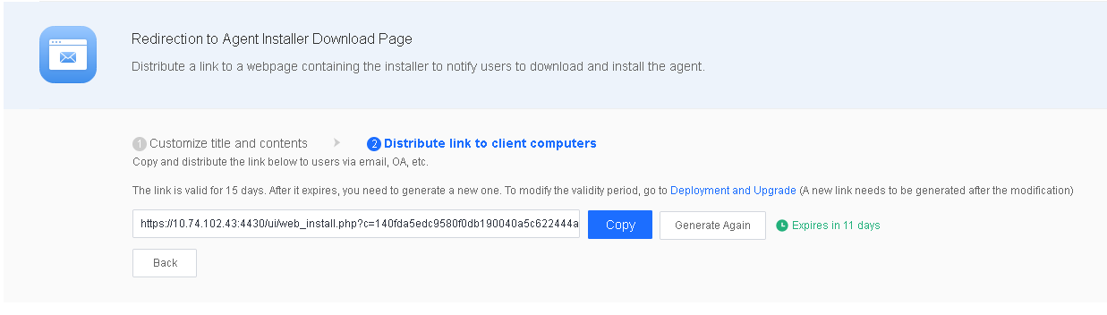 After Endpoint Secure Manager is upgraded, Endpoint Secure Agent automatically downloads upgrade files from Endpoint Secure Manager. To ensure a stable and efficient Endpoint Secure Agent upgrade, we recommend that you configure both auto upgrade and concurrent upgrade settings.