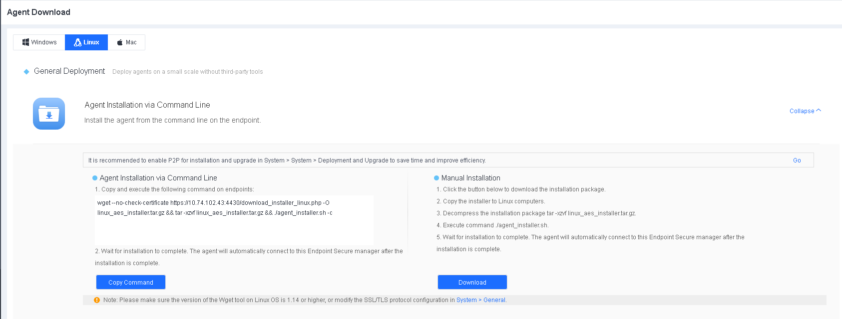 We recommend you go to System > System > Deployment and Upgrade and enable P2P upgrade, as shown in the following figure.