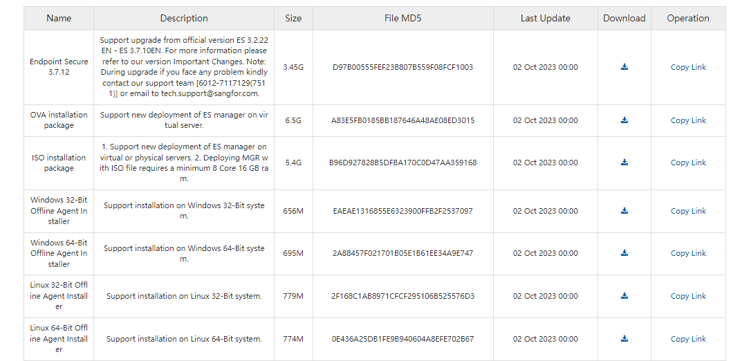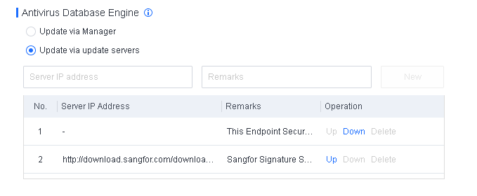 | Endpoint Secure Manager | Cloud server | Patches, signatures, and antivirus databases | http://download.sangfor.com https://download.sangfor.com |