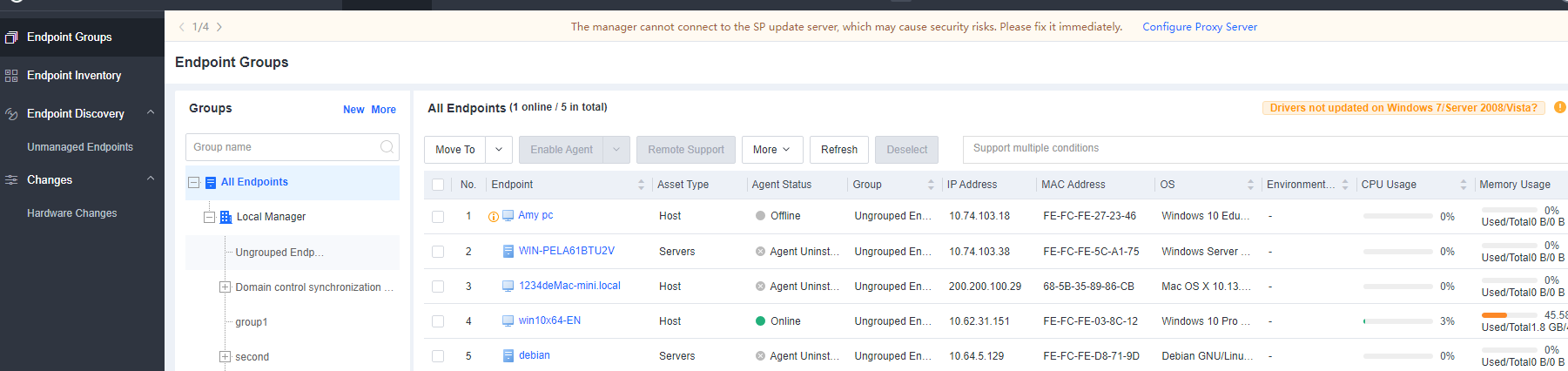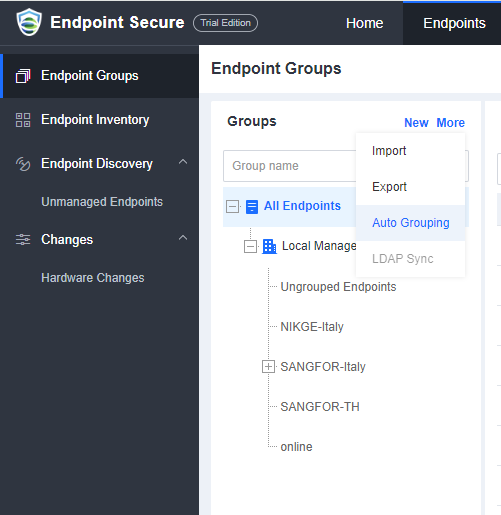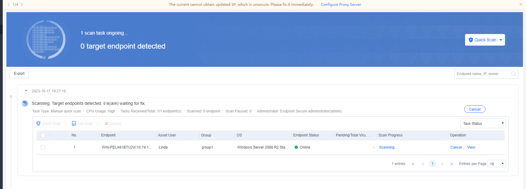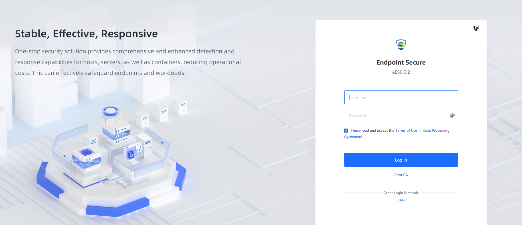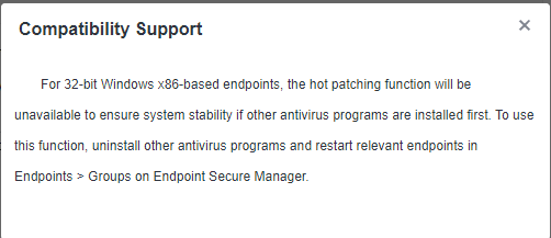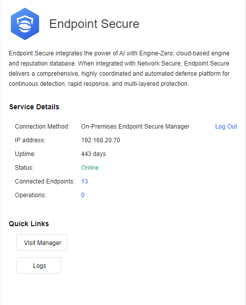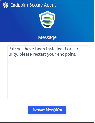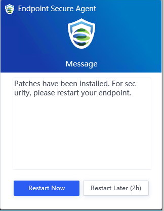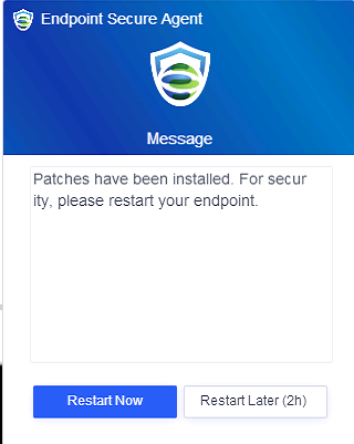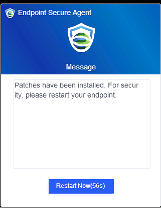 - The upgrade process takes about 5 minutes to complete without restarting the server. After the upgrade, you need to log in to Endpoint Secure Manager again and check whether Endpoint Secure is upgraded to the new version.