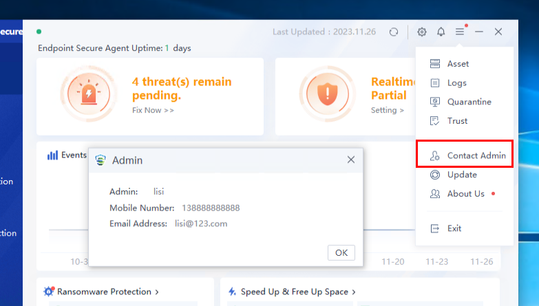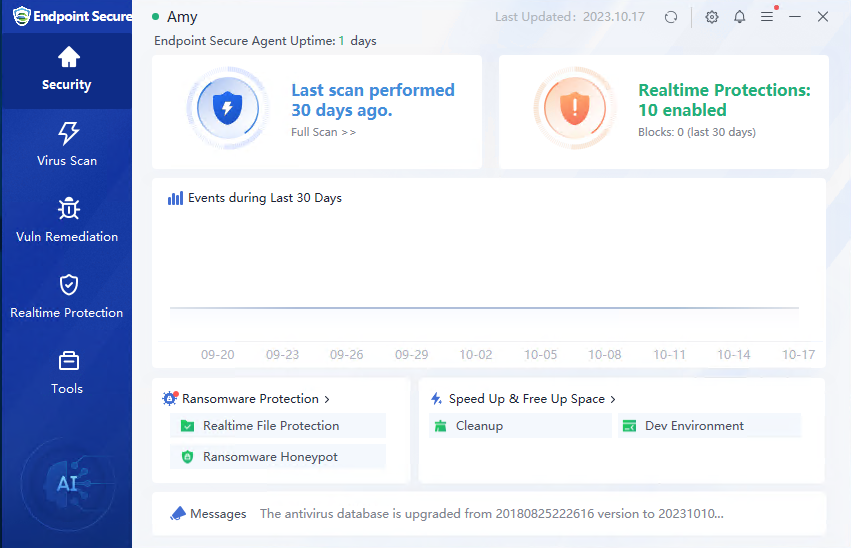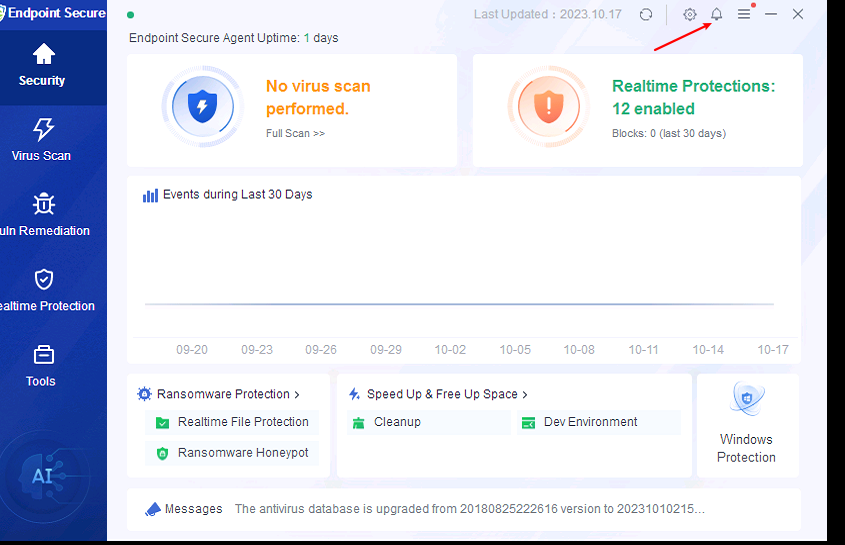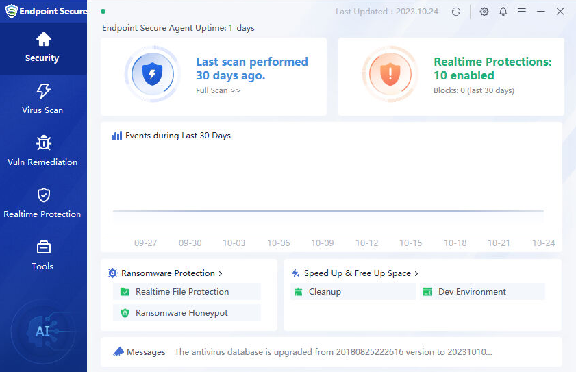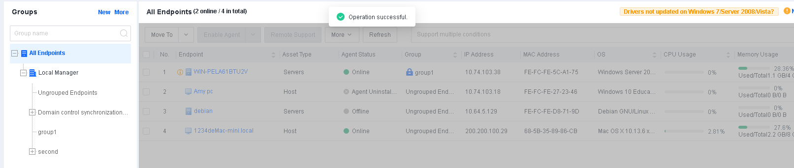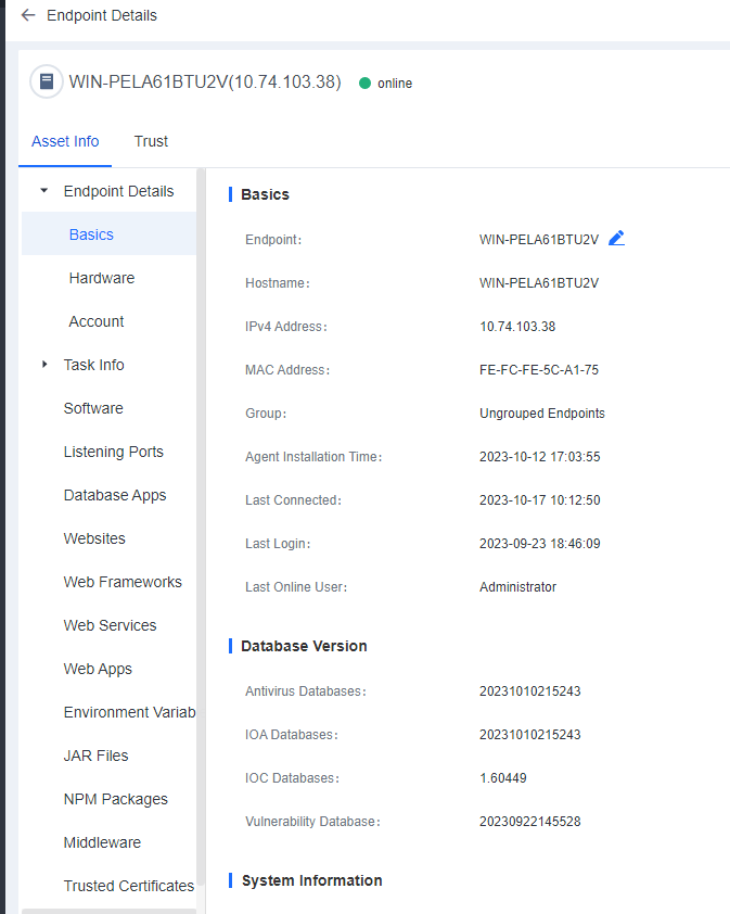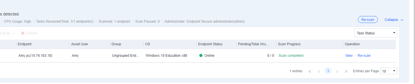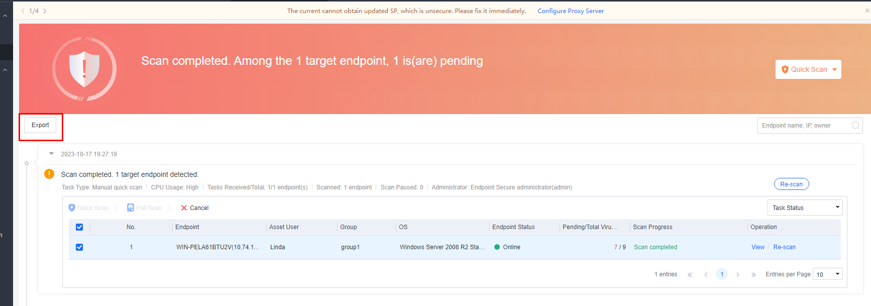 - The upgrade process takes about 5 minutes to complete without restarting the server. After the upgrade, you need to log in to Endpoint Secure Manager again and check whether Endpoint Secure is upgraded to the new version.