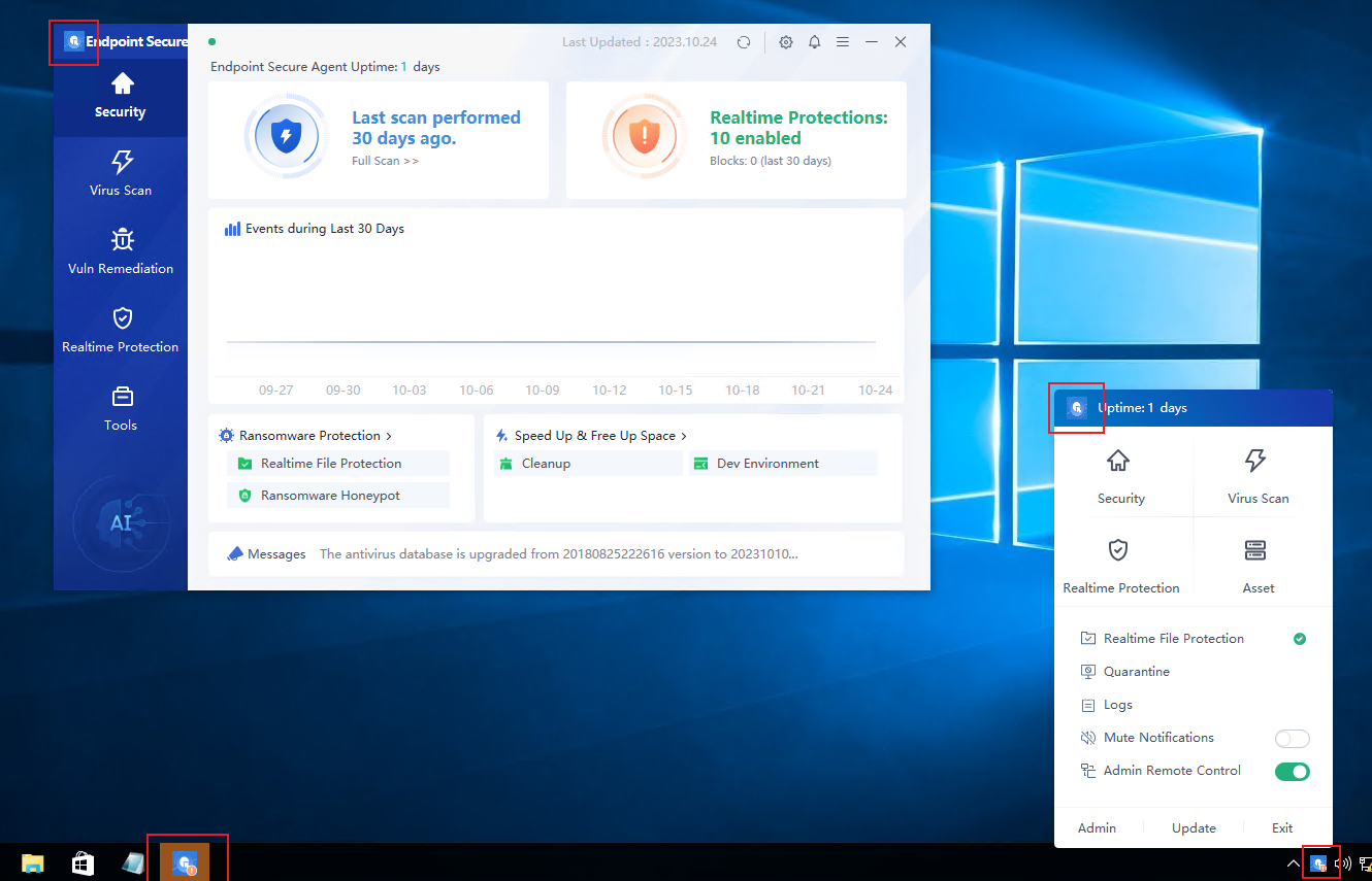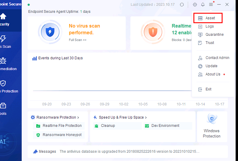 By default, if Endpoint Secure Manager is connected to the Internet, the antivirus database is automatically updated online.