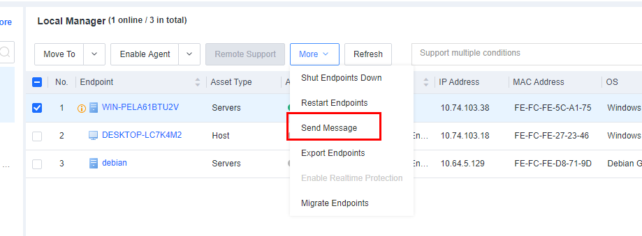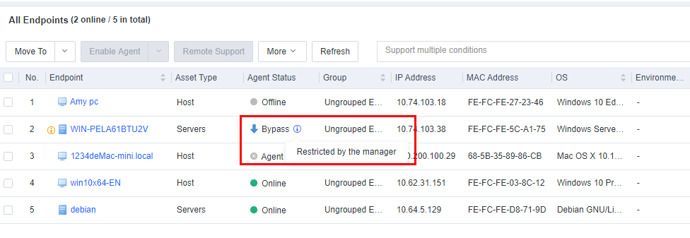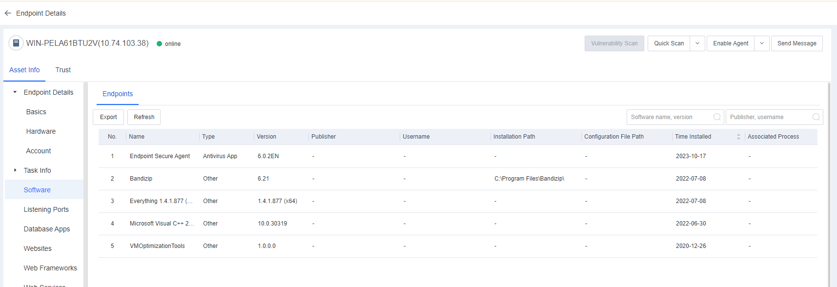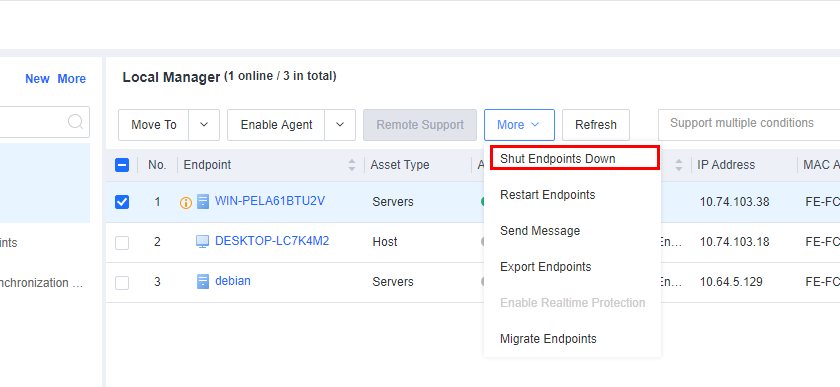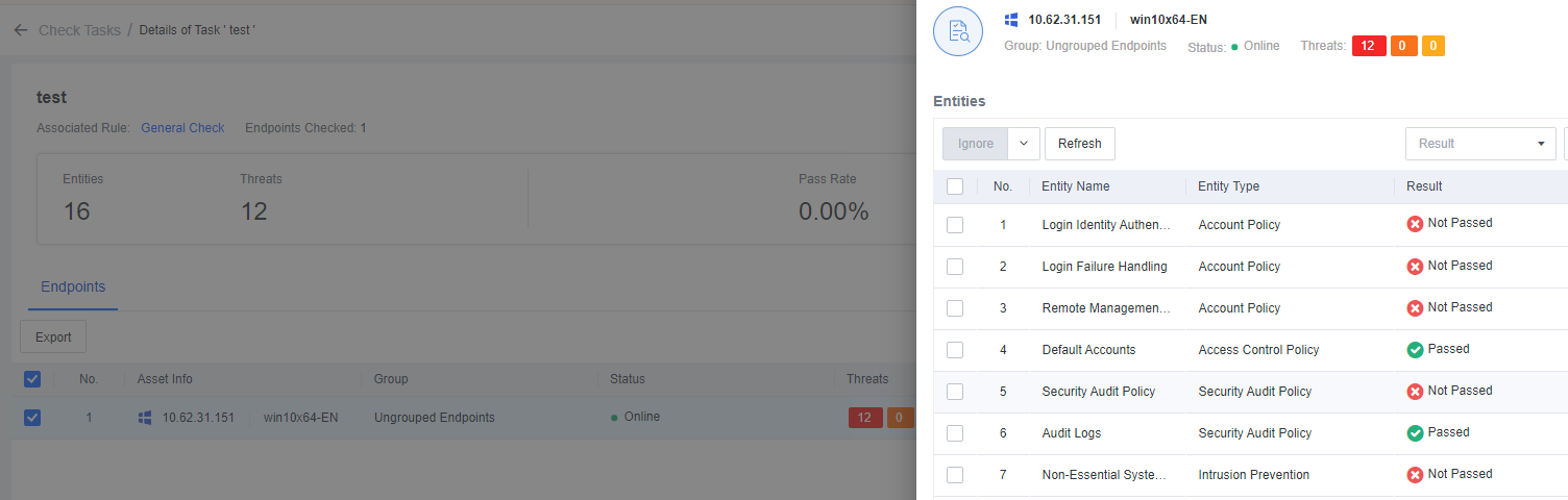Endpoint Secure Manager supports unified endpoint asset management, security, and compliance checks. It collects endpoint behavioral data at the system and application layers, reports collected data to the platform locally for comprehensive correlation analysis and accurate attack prediction and depicts attacks by visualizing the attack process chain. Its threat-hunting feature precisely defends all endpoints against residual attacks based on extensive collected data. Its micro-segmentation feature offers centralized management of access control policies and one-click segmentation of security events.