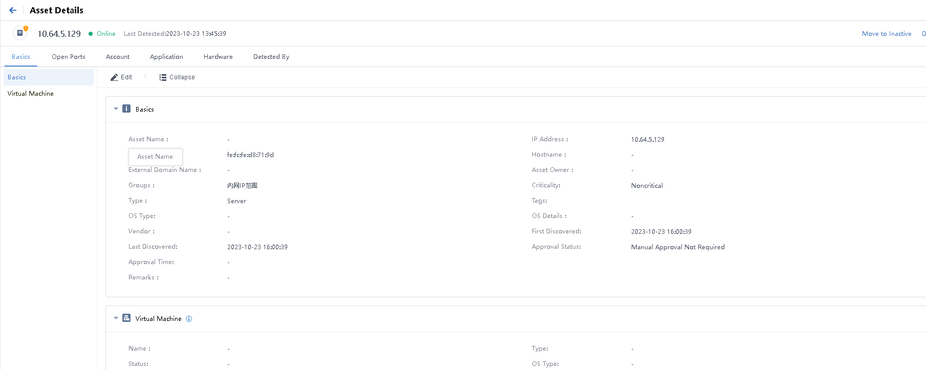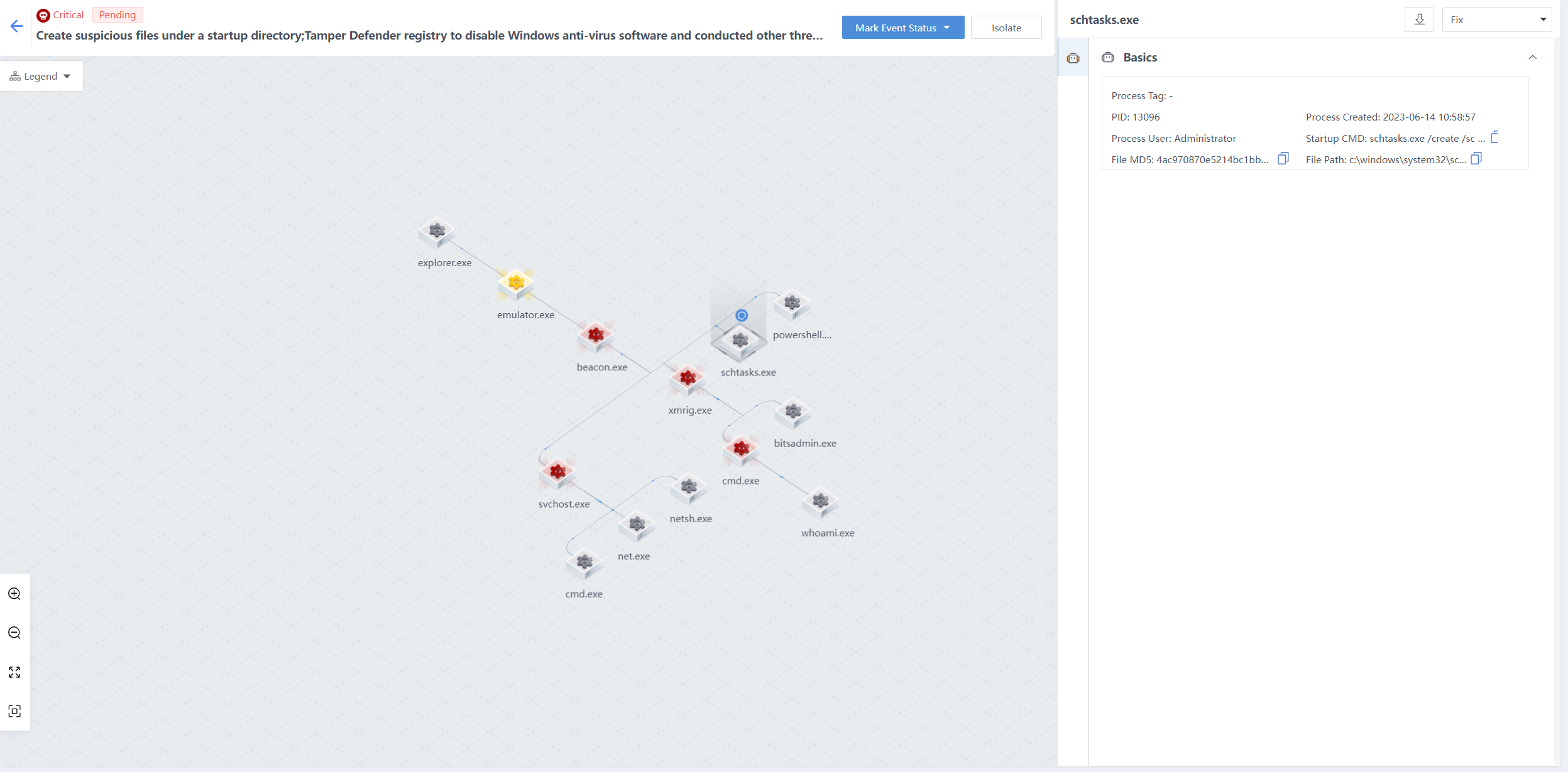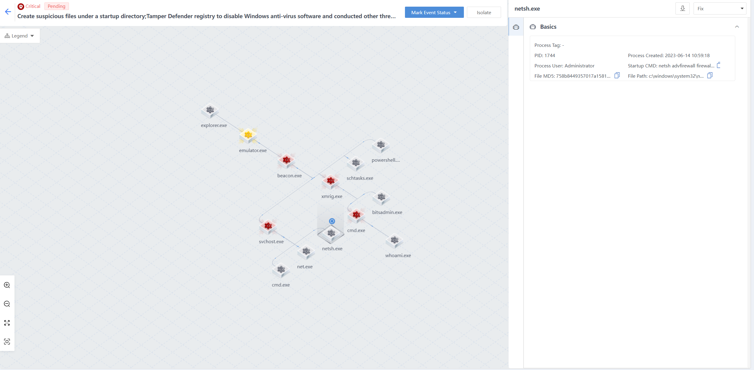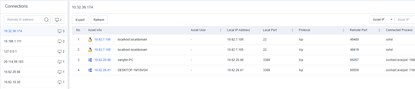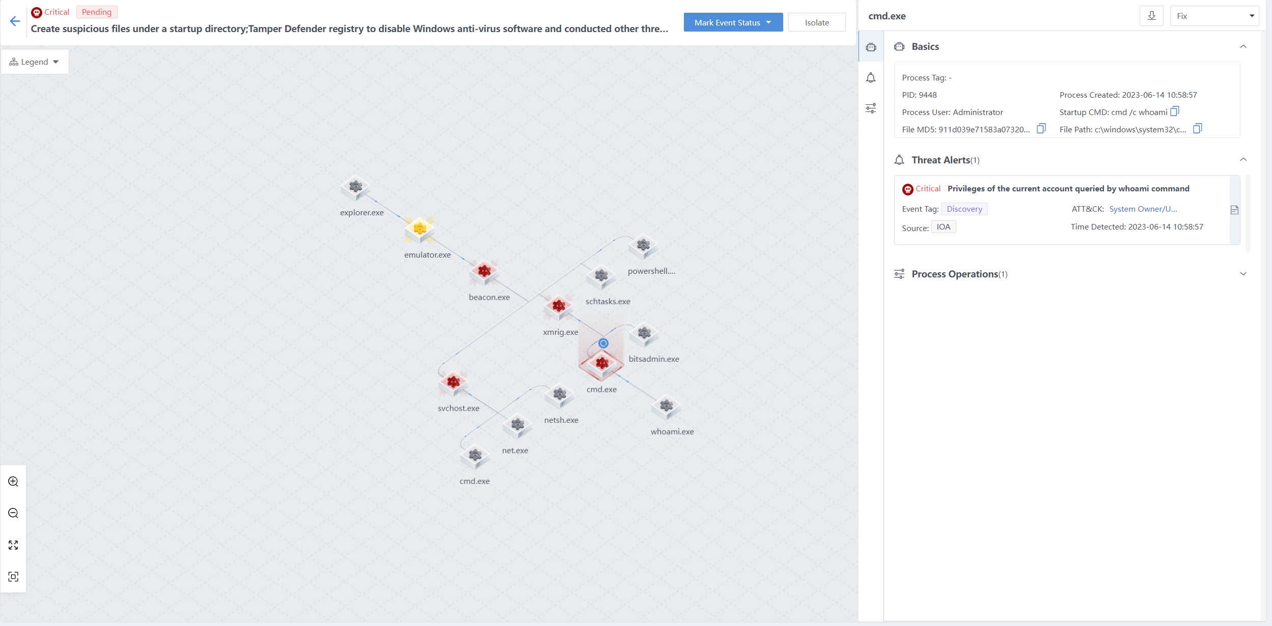 Discovery: Provides pre-event risk assessment capabilities, including fingerprint-based asset inventory, shadow asset discovery, vulnerability patch management, security compliance check, exposure surface analysis, application/system/account risk assessment, security enhancement, USB device control, and micro-segmentation visualization.