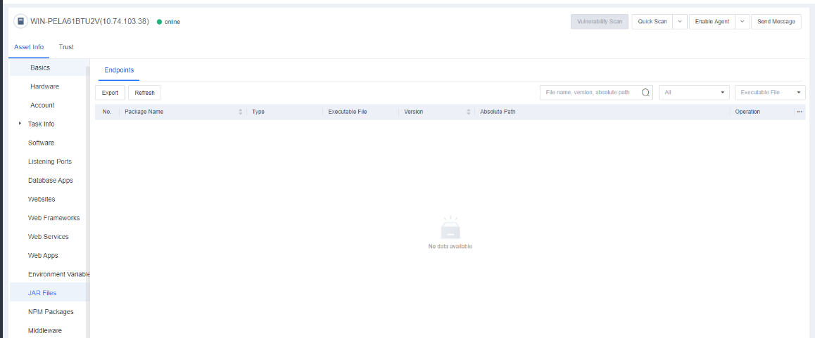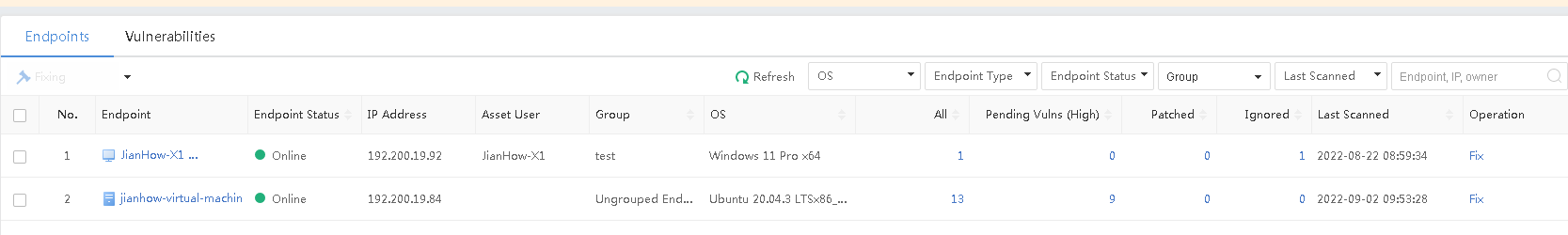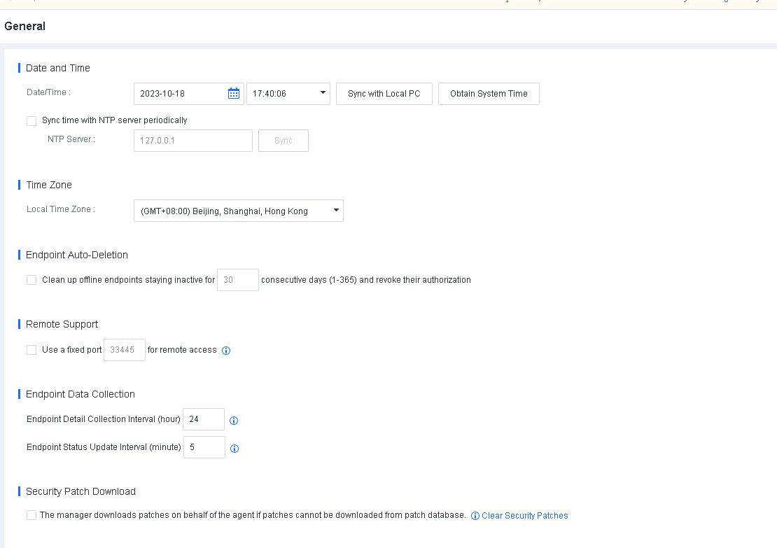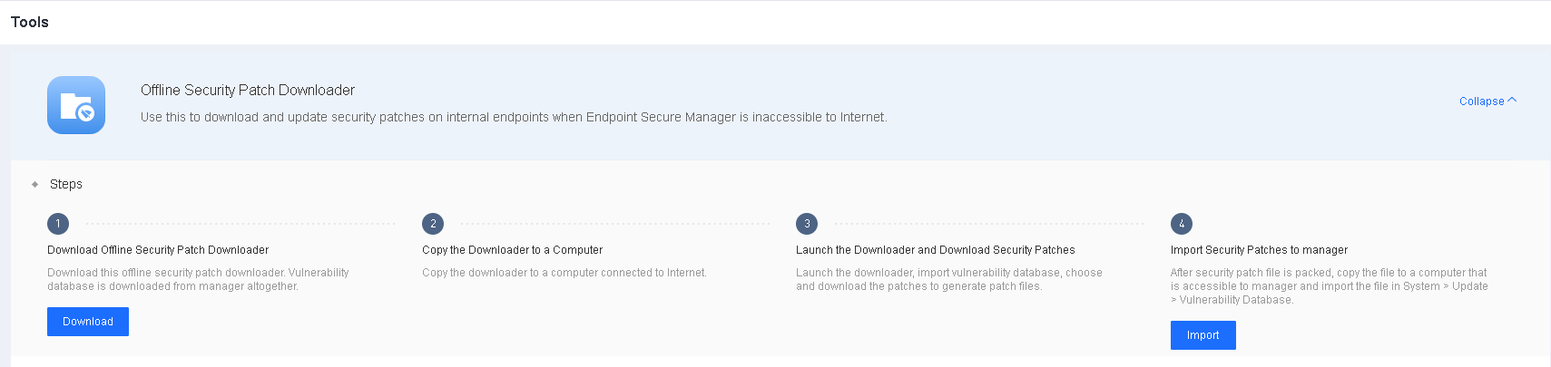 By default, if Endpoint Secure Manager is connected to the Internet, the vulnerability database and patch package are automatically updated online.